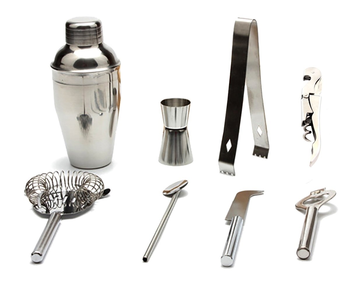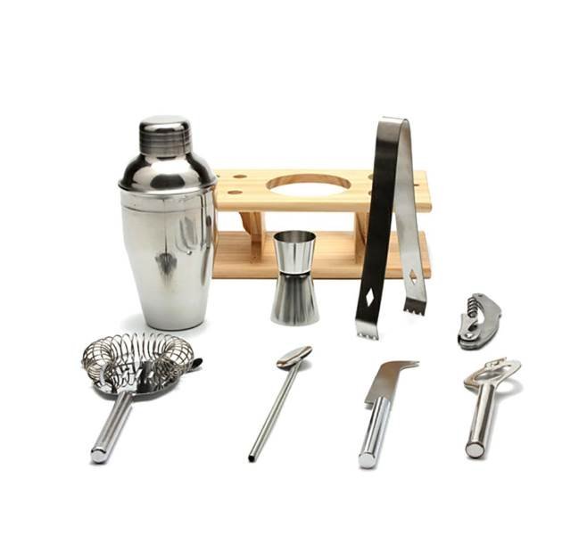 Nepostradatelná výbava pro Vaše večírky. Překvapte své hosty rafinovanými koktejly všech možných chutí a složení, připravených pomocí naší 9 dílné barové koktejlové sady. S touto šejkrovou výbavou dosáhnete nepochybně profesionálních výsledků při přípravě koktejlů. Vlastní kreativitou dotvořte svými drinky tu správnou atmosféru Vašeho party!