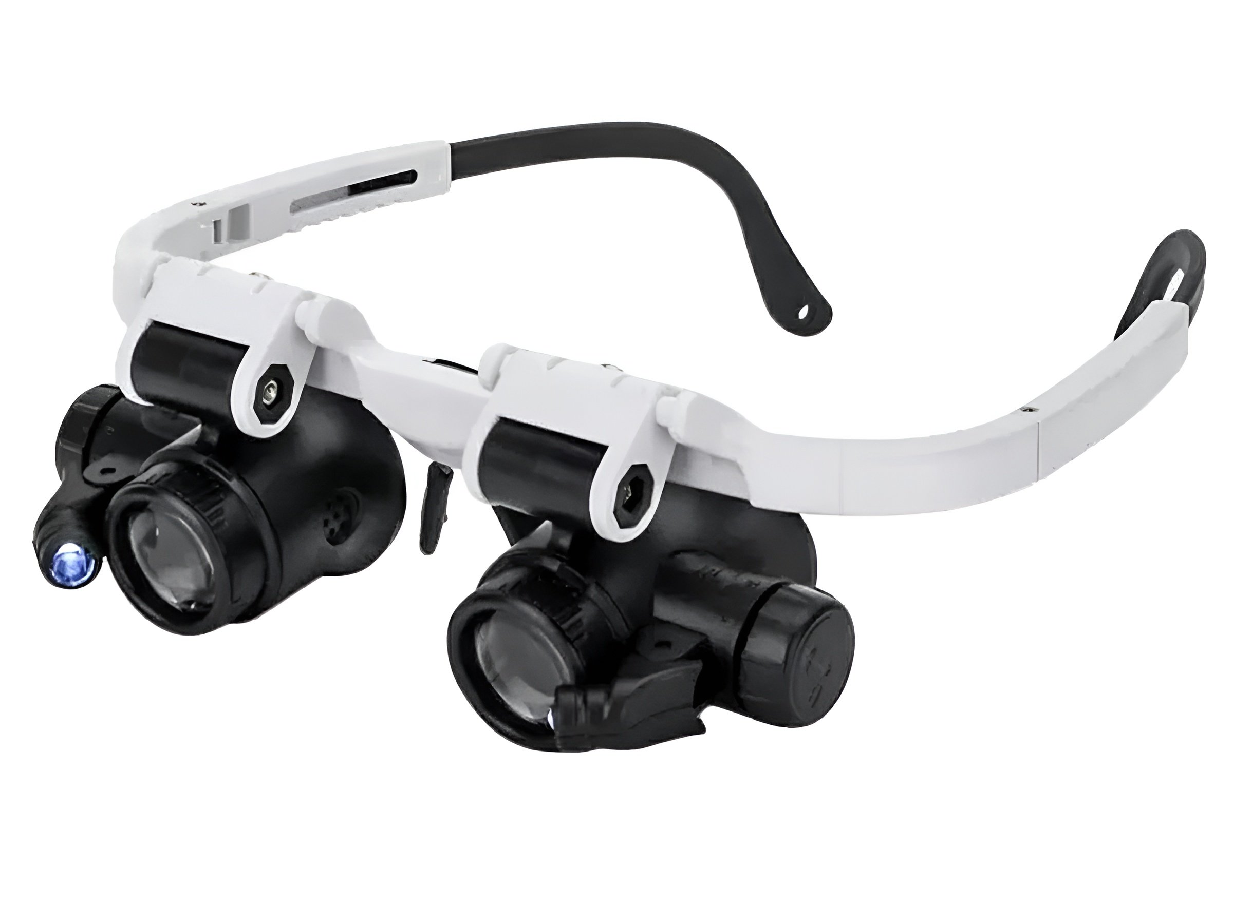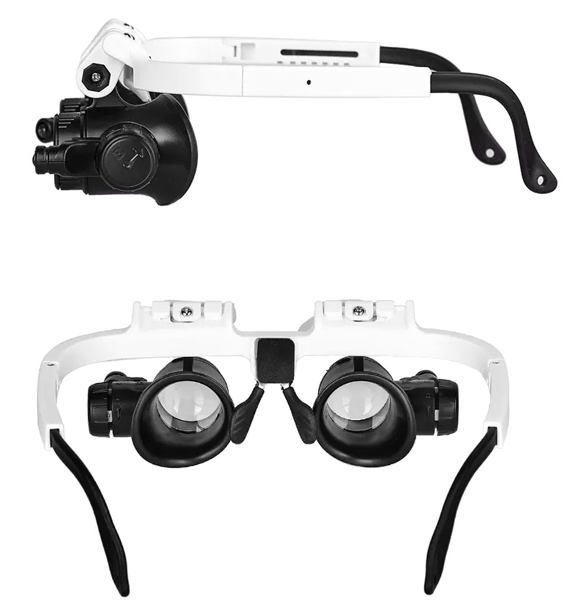 Hodinářské brýle / lupy v rozsahu x8 a x23. Pohodlné brýle s velkým zvětšením se zabudovaným LED osvětlením. Perfektní pro hodináře, elektroniku, botaniky a všechny přesné práce.