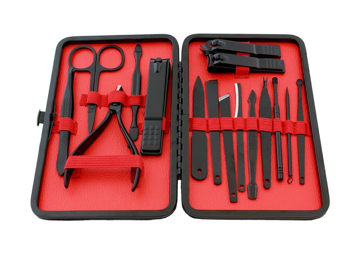 16ti dílná manikůra z nerezové oceli v luxusním černém provedení