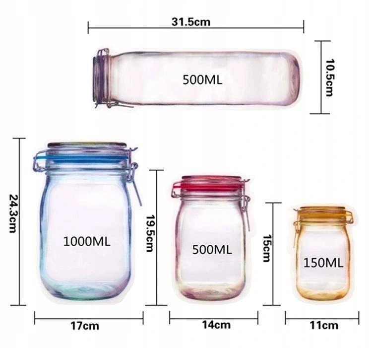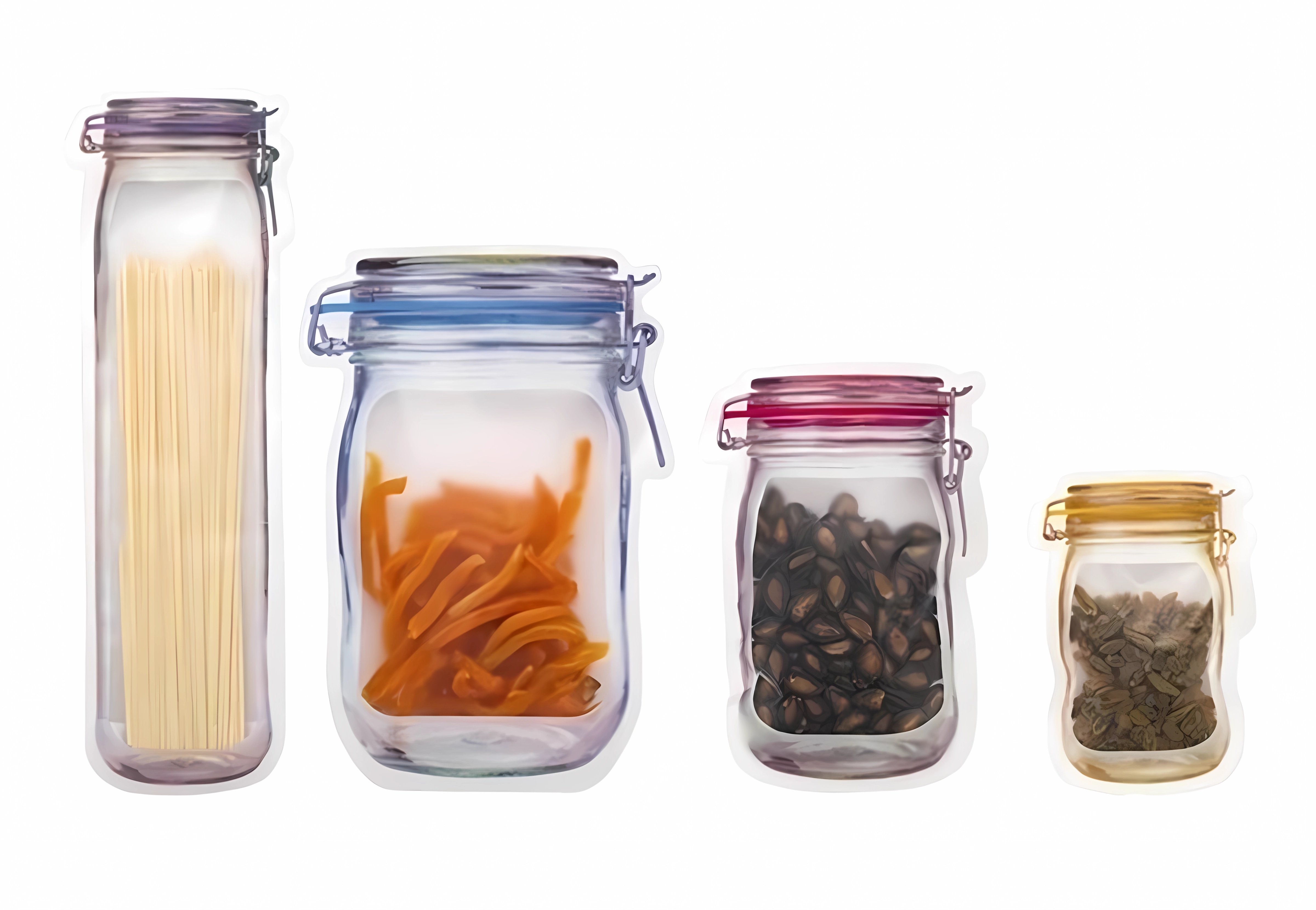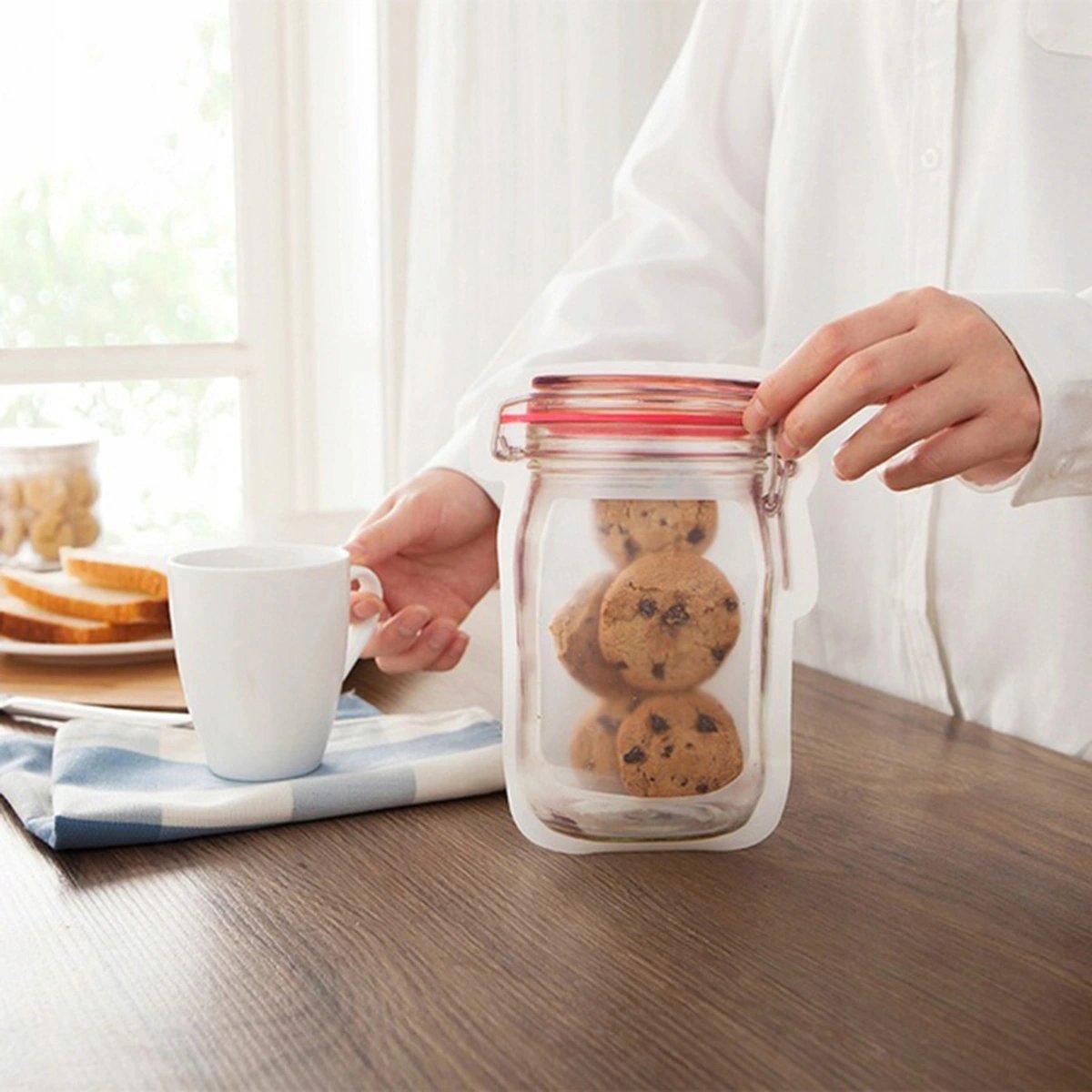 Zavírací sáček se nápadně podobá uzavíratelné sklenici, ale oproti sklenici má tu výhodu, že je mnohem lehčí a lépe skladný. Tento typ sáčku je opatřený vzduchotěsným zipovým zavíráním. Proto budou potraviny po vyjmutí jako čerstvé. Vhodný na potraviny jako například koření, těstoviny, oříšky nebo rýži. Možnost opakovatelného používání. Díky svojí velikosti ho můžete využívat také při cestách na svačinu.