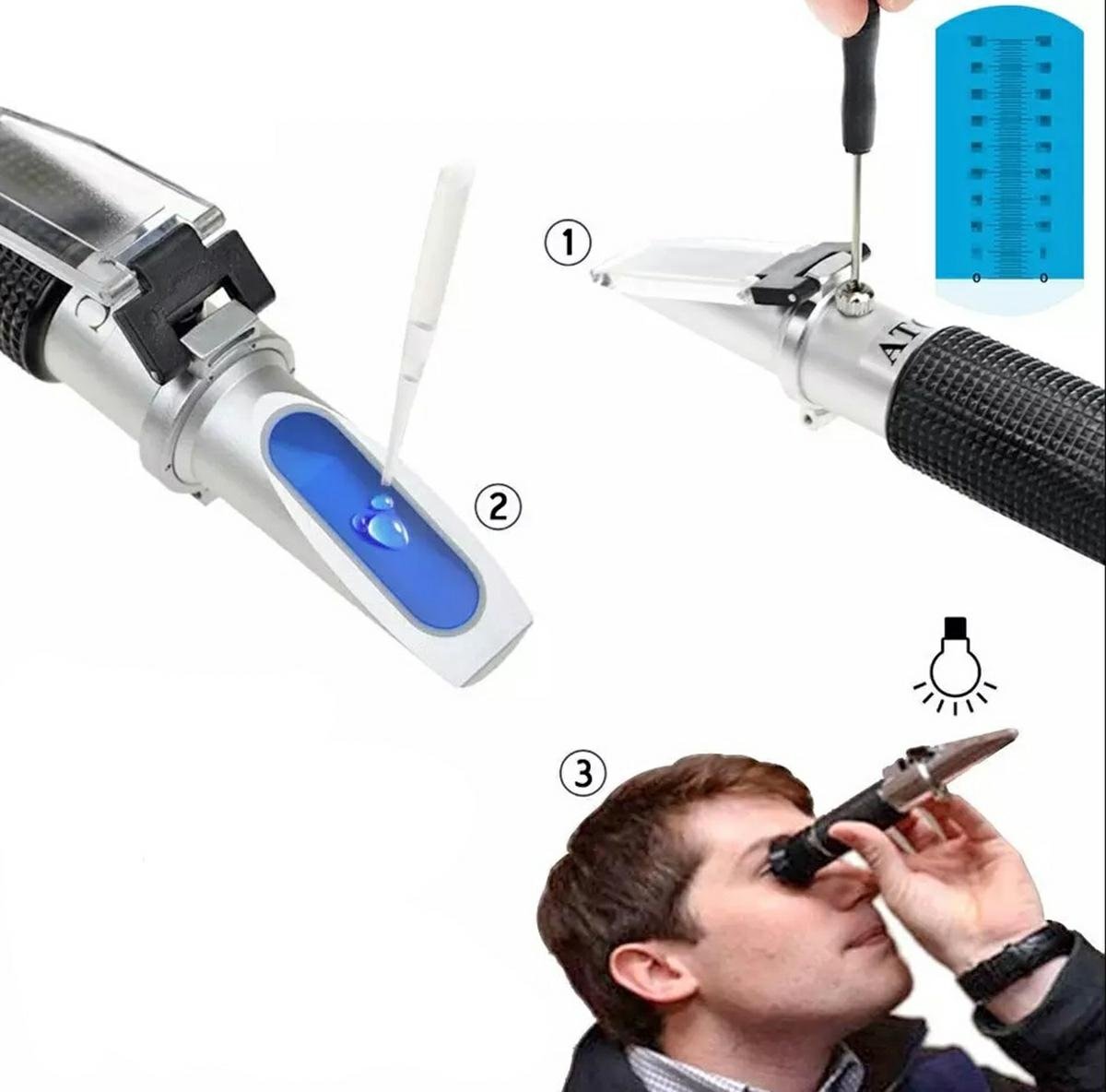 Kompaktní, optický tester provozních kapalin automobilu. Umožňuje okamžité měření obsahu elektrolytu v baterii a bodu tuhnutí chladicích kapalin a kapalin na bázi glykolu. Jednoduše odeberte vzorek tekutiny pipetou, umístěte vzorek na ovládací panel refraktometru a odečtěte indikaci pomocí hledáčku.