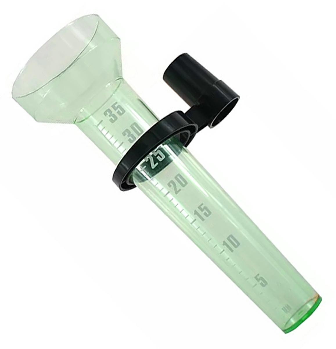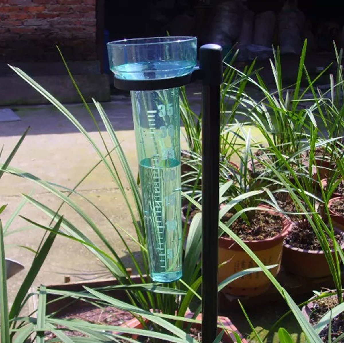Kompaktní měřič úhrnu srážek. Srážkoměr je jednoduchý a přesný nástroj, který měří úrovně srážek až do maxima 35 litrů na metr čtvereční (35 l / m2). Pohodlný způsob přepočtu výsledků (každý 1 mm deště na měřidle odpovídá 1 litru deště na m2).