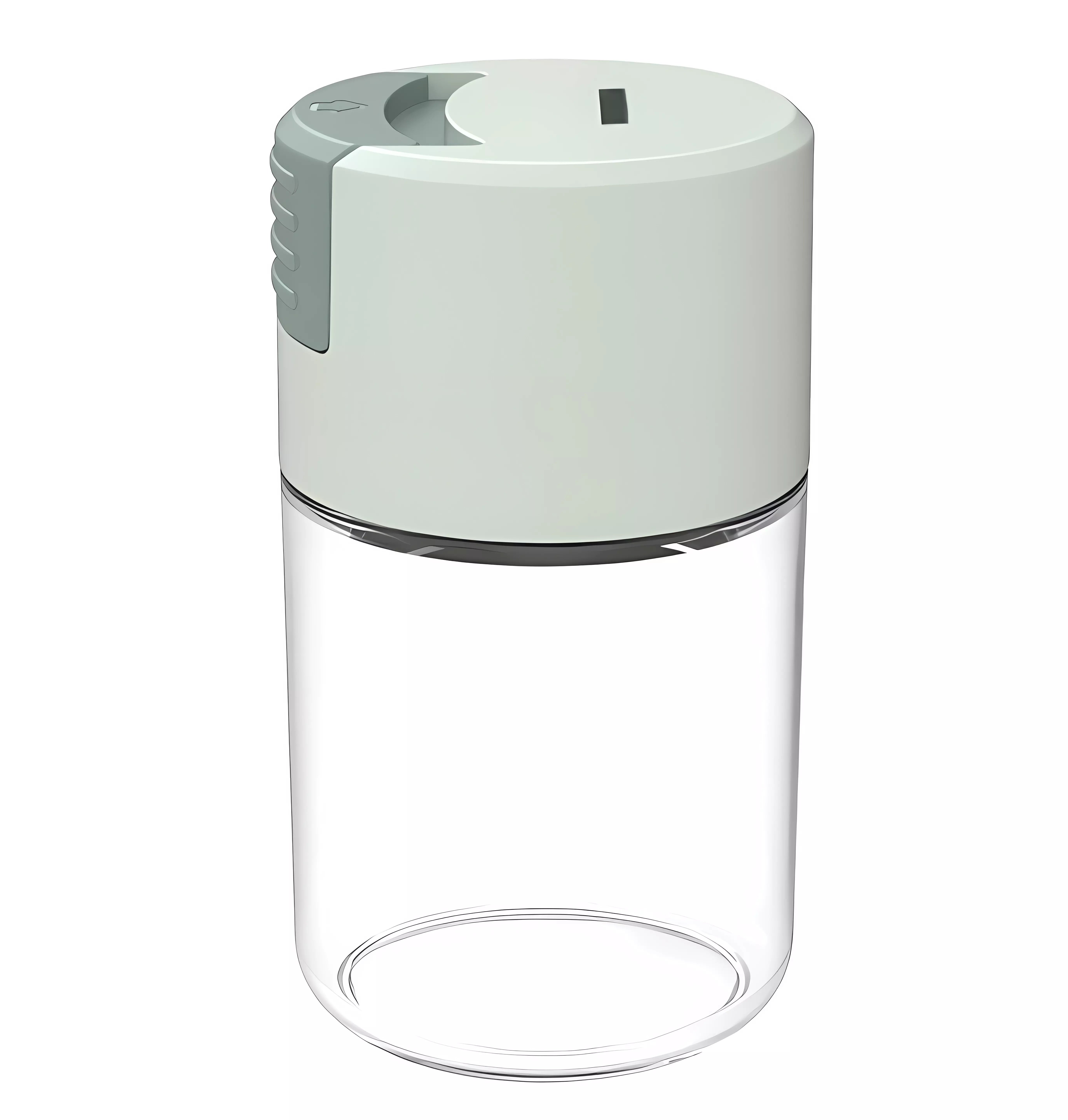 Skleněná nádoba na koření. Vybaveno speciálním víčkem, které automaticky odměří 0,5 gramu soli / pepře. Po naklonění nádoby a stisknutí tlačítka uzávěr automaticky odměří 0,5 g koření. Průhledná skleněná struktura umožňuje vidět zbývající množství bez nutnosti otevírat nádobu.