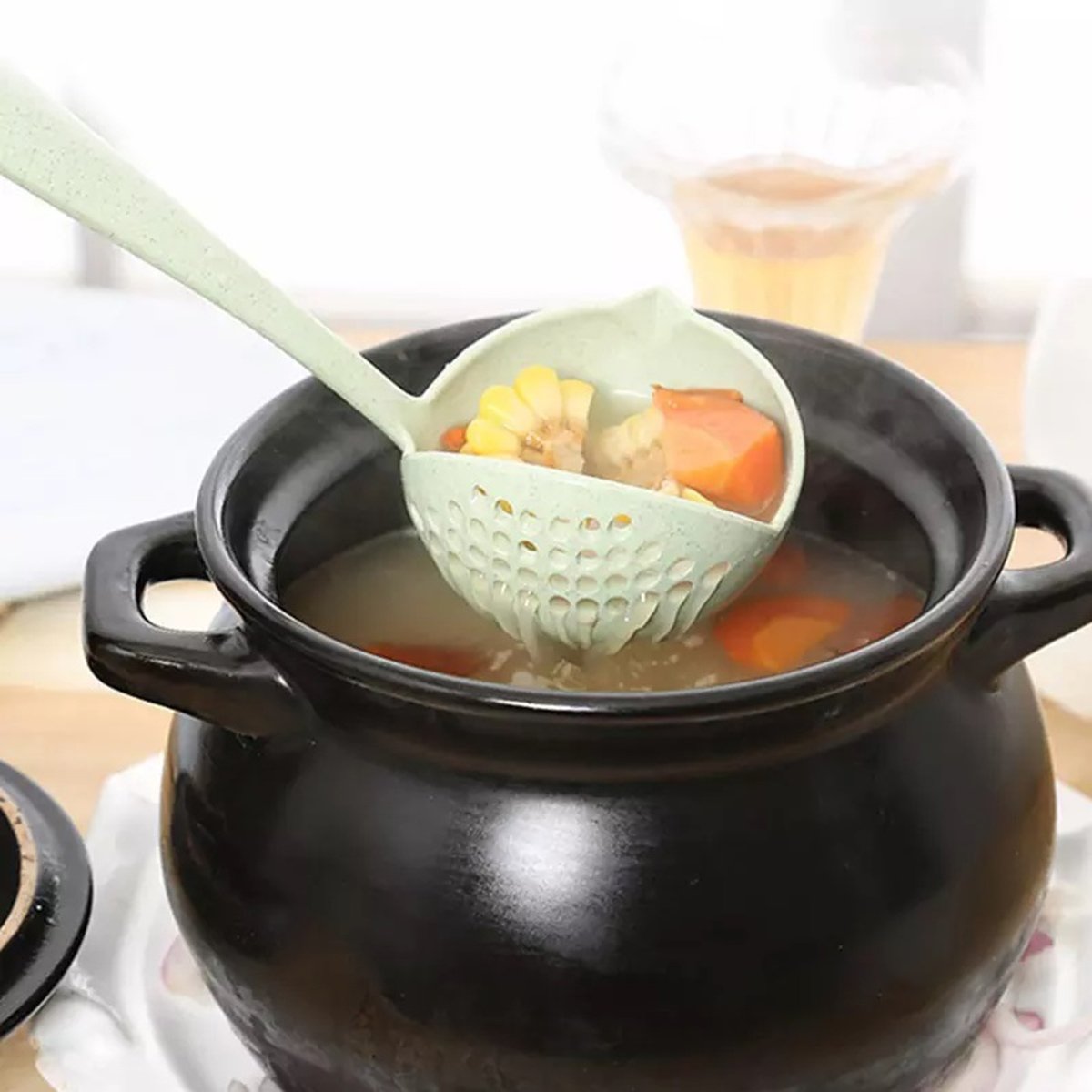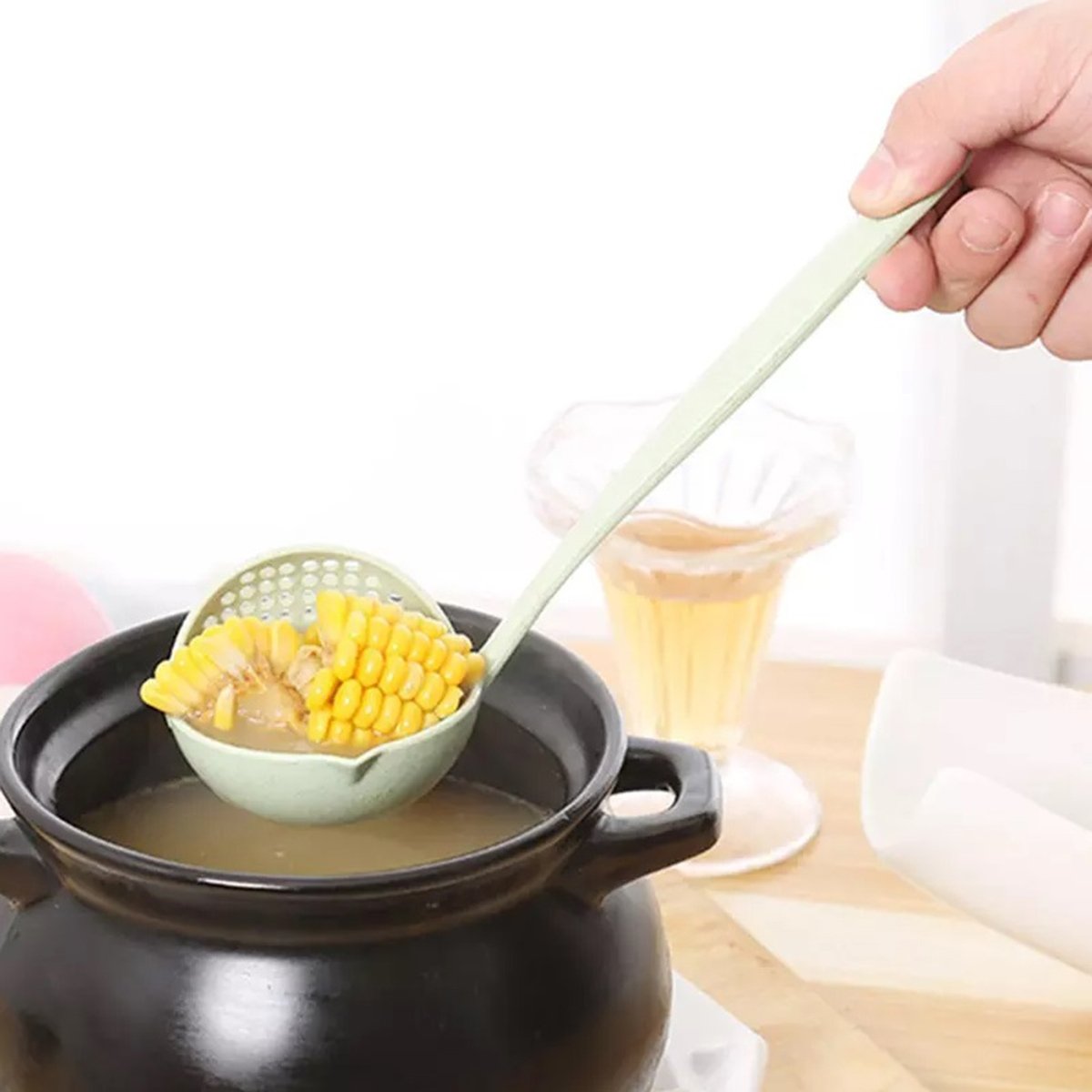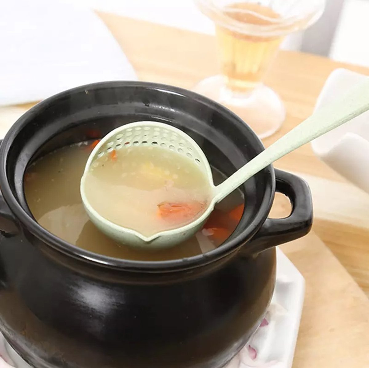 Praktická kuchyňská lžíce 2 v 1 je nezbytným doplňkem každé kuchyně. Skvěle poslouží k nandávání čerstvě vytažených knedlíků nebo těstovin na talíř. Vyrobeno z potravinářského a tepelně odolného plastu. Díky dlouhé rukojeti s otvorem pro zavěšení je lžíce v praxi mimořádně užitečná.