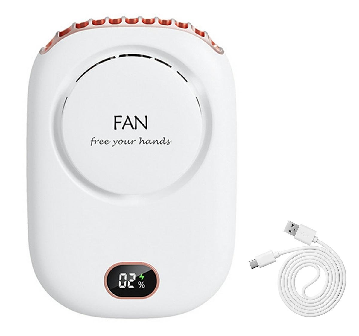Bezlopatkový kompaktní přenosný ventilátor. Vybaven dlouhou šňůrkou, která umožňuje zavěšení na krk. Perfektní na cesty, ale i na doma. Napájení pomocí vestavěné dobíjecí baterie, dobíjecí pomocí USB kabelu. Nastavitelný průtok vzduchu (3 rychlosti). Nepostradatelné při práci u počítače v horkých dnech.