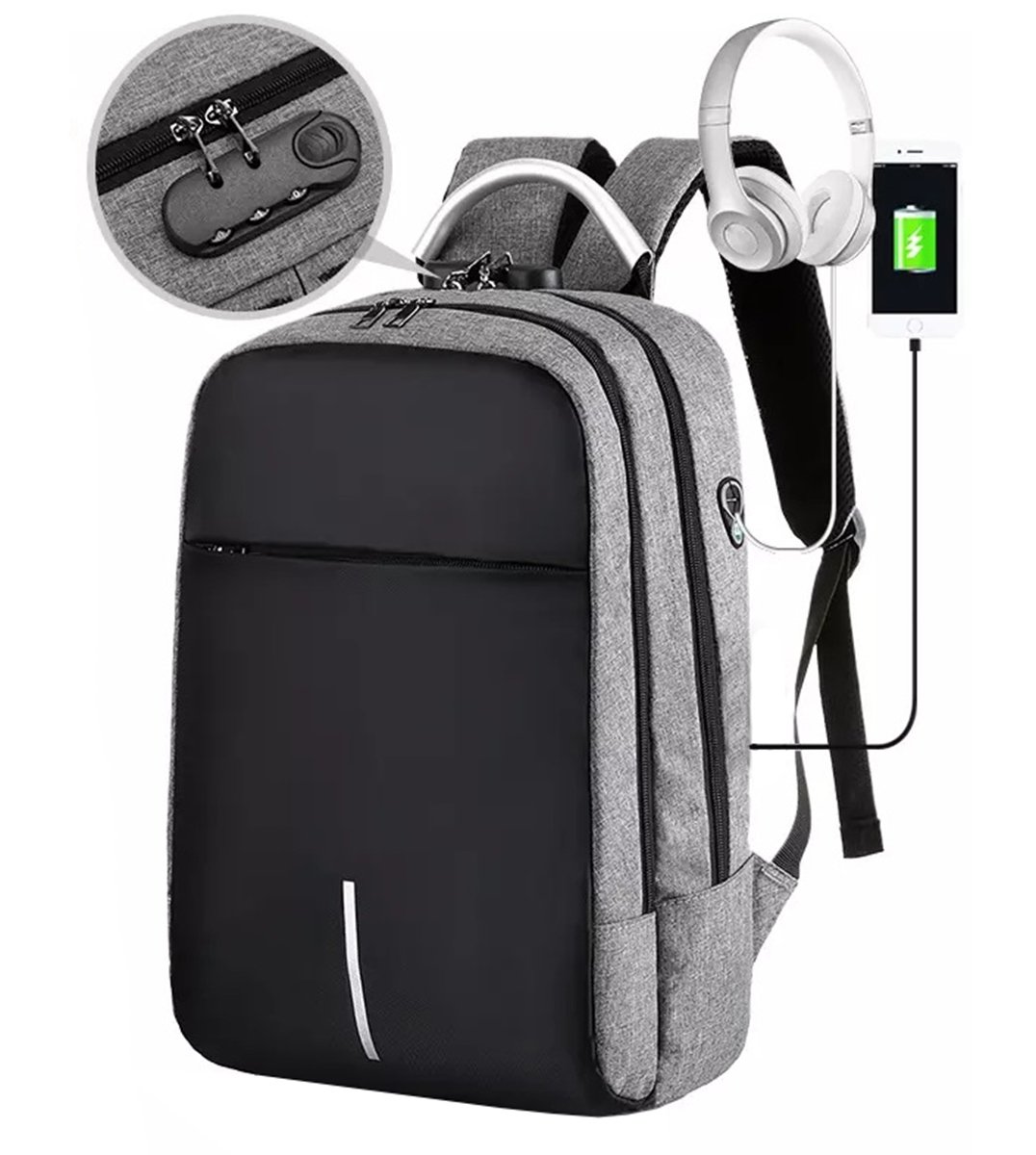 APT BQ57 Chytrý batoh Unisex s USB, zámek, šedočerný