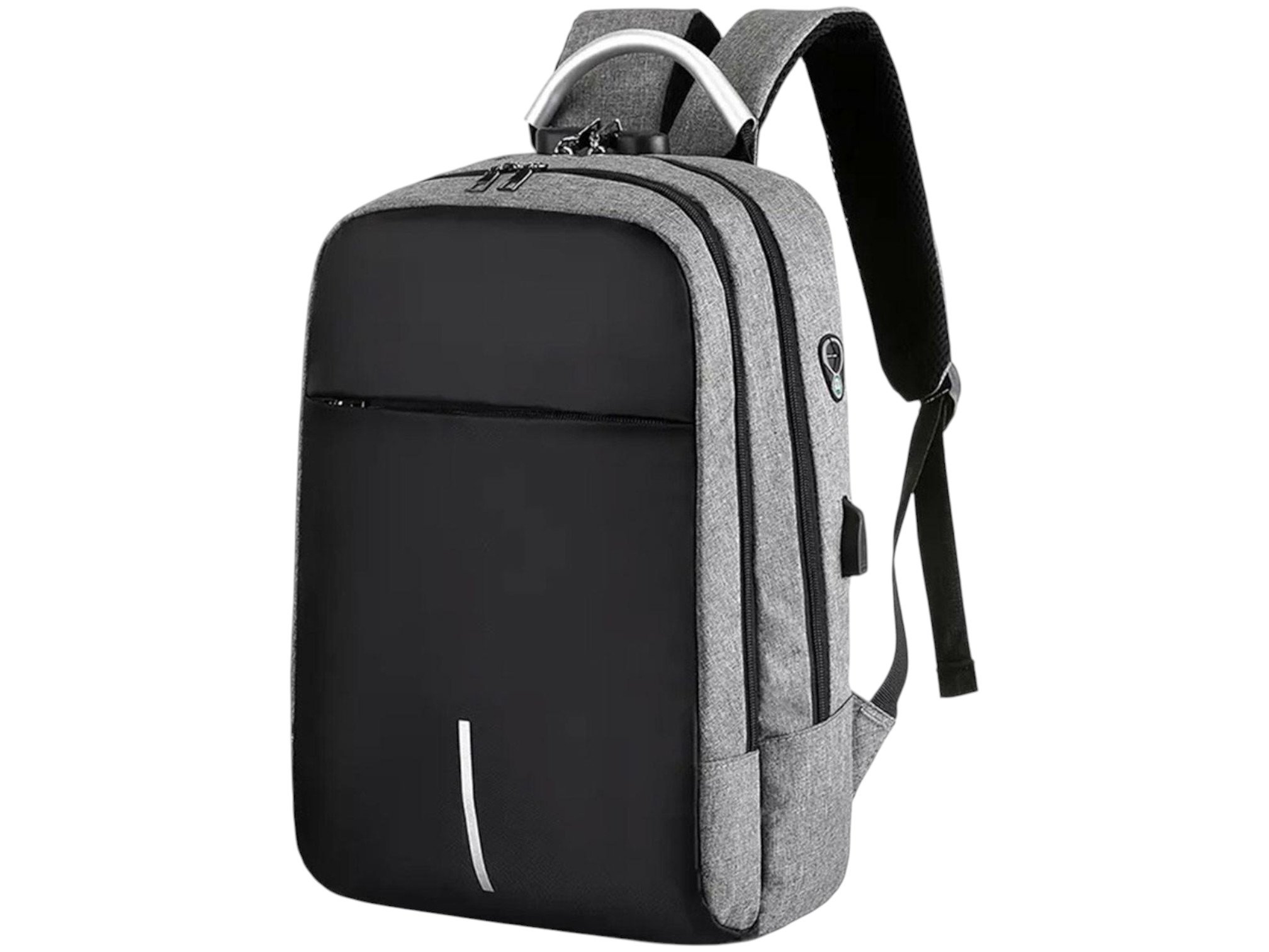 Batoh na notebook proti krádeži s integrovaným kombinačním zámkem. Má velkou hlavní přihrádku a další kapsy, které usnadňují sbalení všech potřebných věcí. Dodatečný otvor umožňuje připojení kabelových sluchátek a odvozený port USB typu A usnadní nabíjení telefonu. Pevné zipy zabraňují vypadnutí obsahu. Univerzální design se osvědčí jak při každodenním používání, tak i v oficiálnějších situacích.