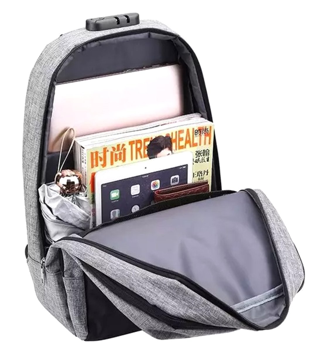 Batoh na notebook proti krádeži s integrovaným kombinačním zámkem.