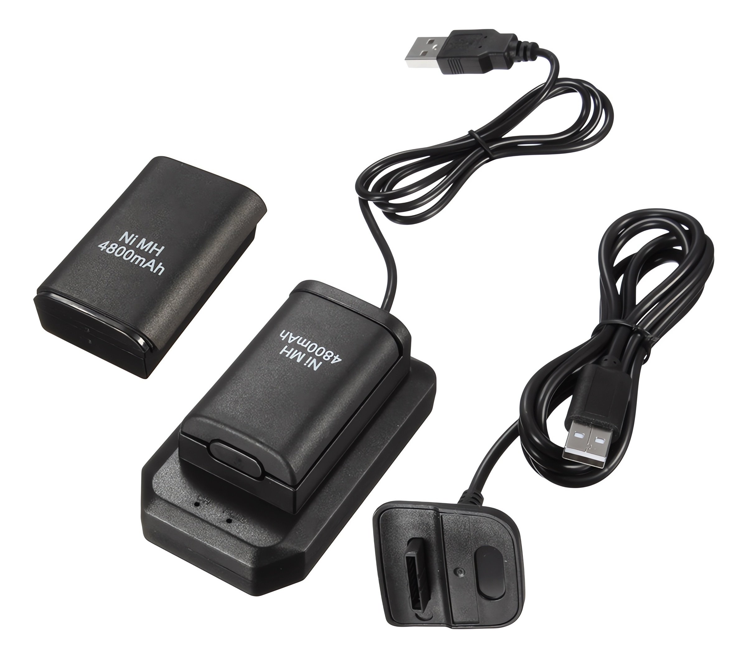 Dokovací stanice - USB nabíječka - Play&Charge pro baterie ovladače Microsoft XBOX 360 Součástí balení jsou i 2 náhradní baterie podložky. Nezbytná sada, která vám ušetří čas na dodatečné nabíjení baterie. Díky kabelu Play&Charge už nebudete muset přestat hrát a čekat na nabití článků.