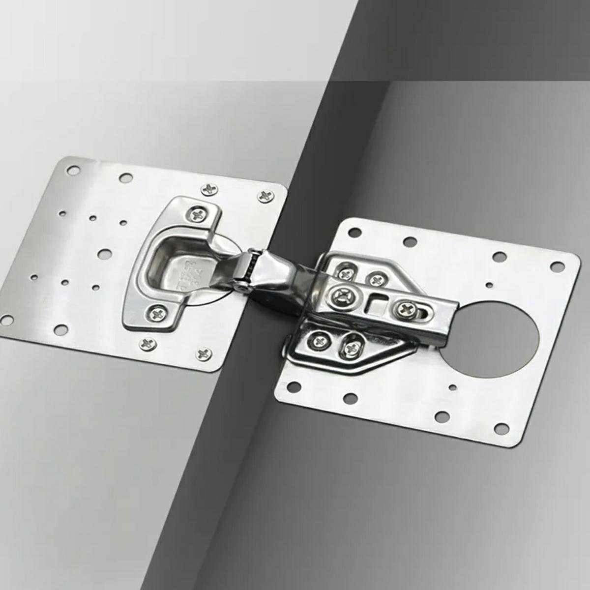 Univerzální sada na opravu pantů. Sada obsahuje speciální desku / podložku závěsu se štěrbinou pro závěs a množstvím otvorů pro šrouby různých roztečí. Jedná se o levný a vynikající způsob opravy rozbitého pantu. Výrobek je přizpůsoben na levou a pravou stranu pantu.