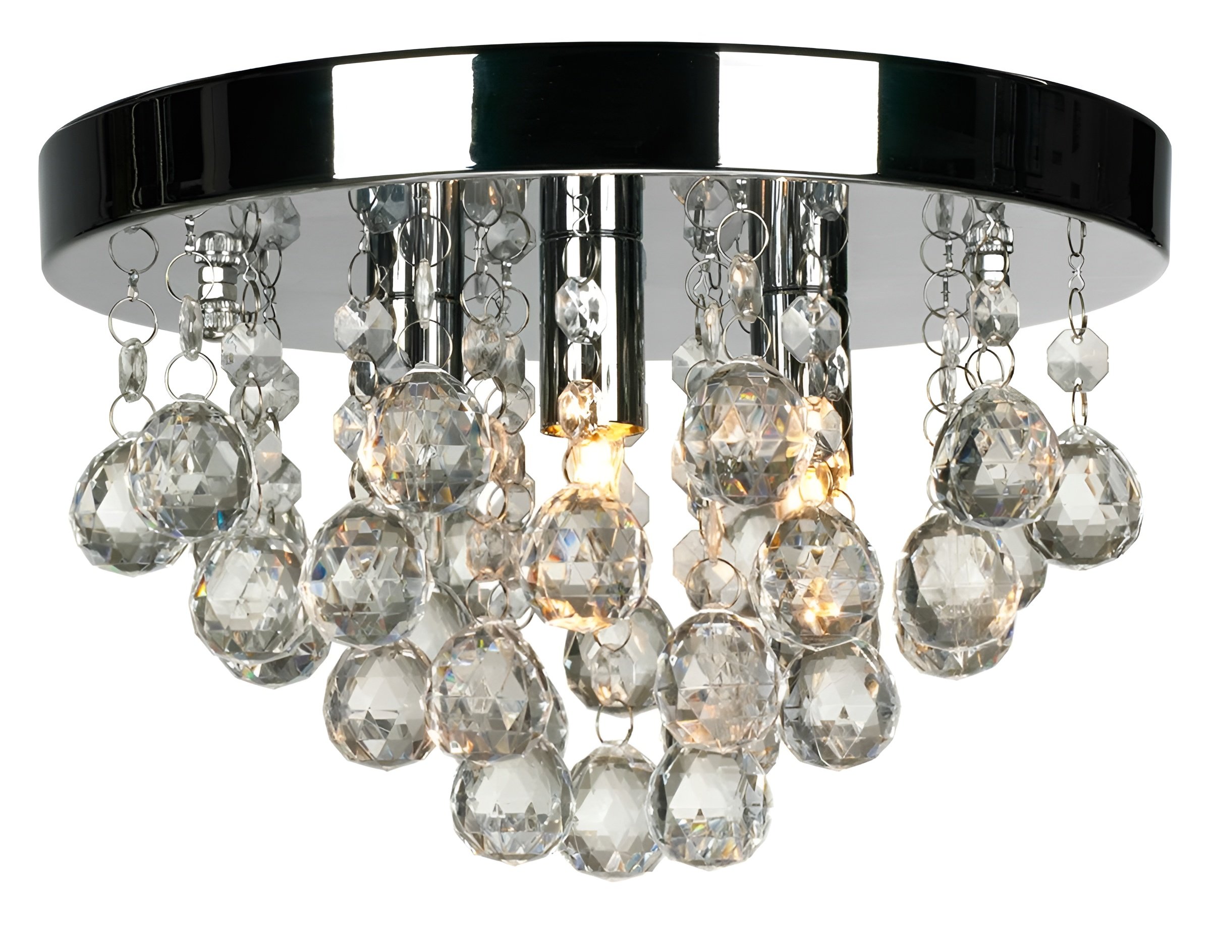 Chromovaný lustr s krystaly, vybavený 3 zásuvkami typu G9