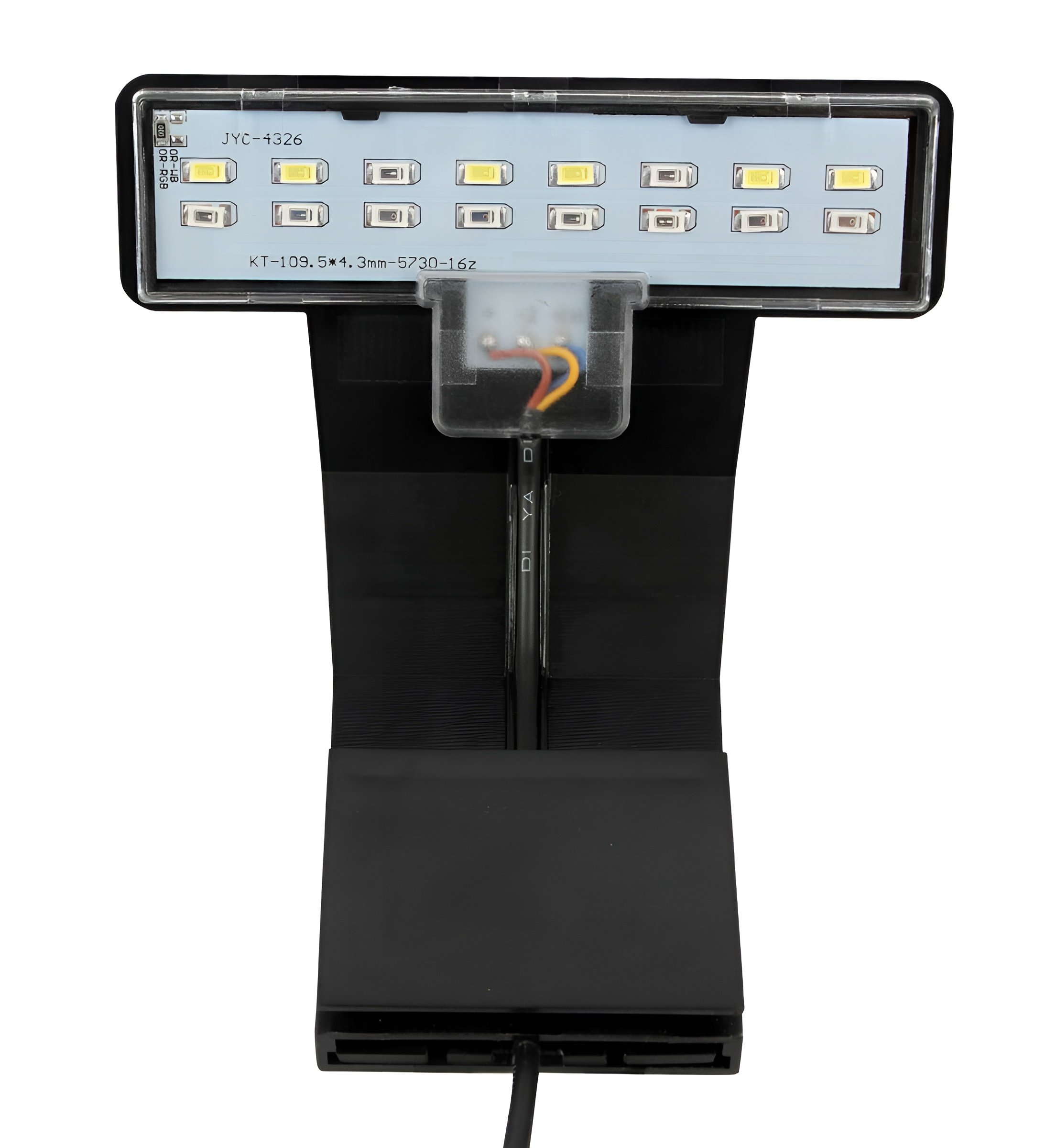 Energeticky úsporná LED akvarijní lampa. Vybavena až 12 energeticky úspornými LED se studenou bílou barvou a 4 LED s modrou barvou. Určeno pro akvária o šířce 15 až 40 cm a tloušťce skla do 5 mm. Napájení ze sítě 230V, což zajišťuje vysokou světelnou účinnost a činí lampu bezúdržbovou. Disponuje napájecím kabelem o délce 130 cm. Studená barva světla zajišťuje dokonalou reprodukci barev uvnitř akvária.