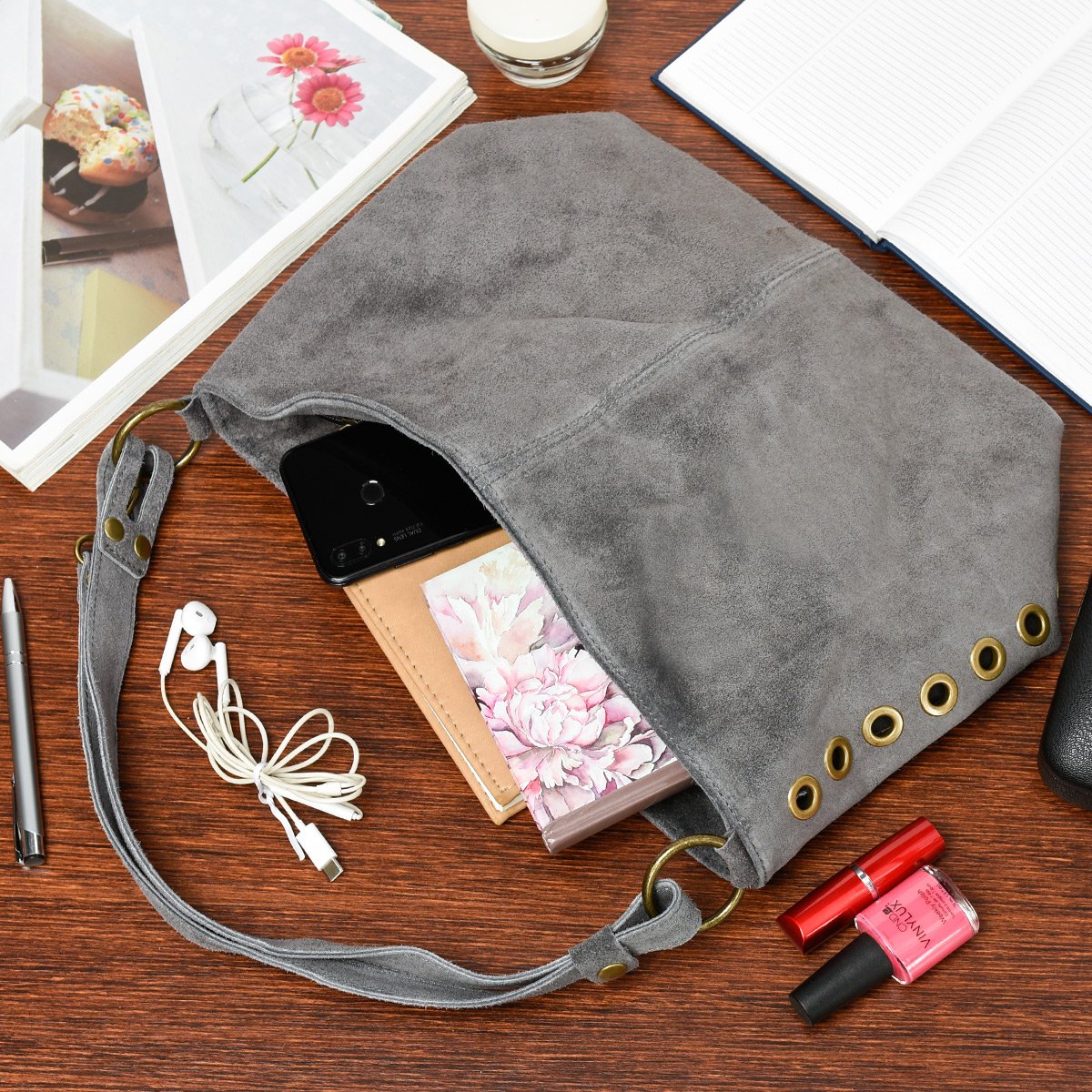 Beltimore W05 Dámská semišová kabelka šedá