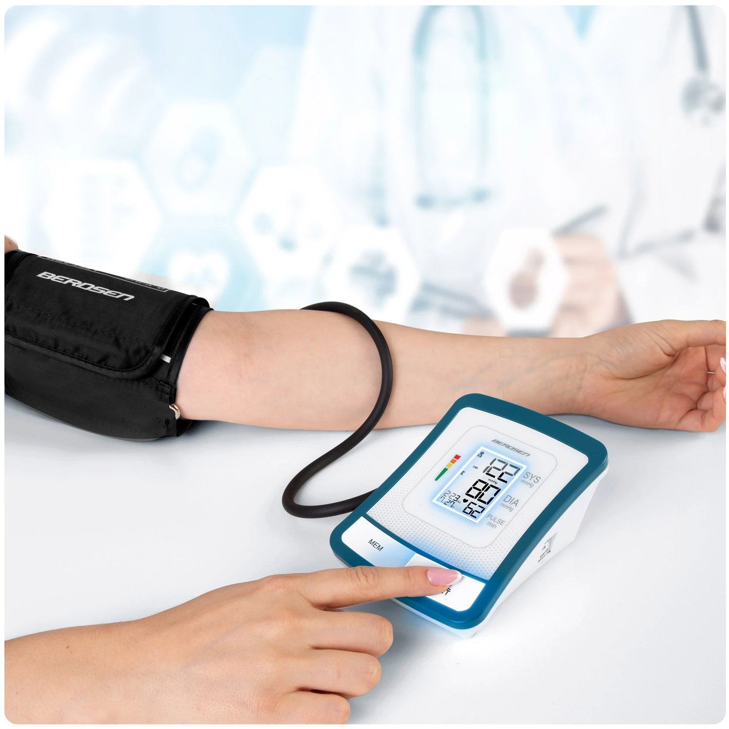 Díky intuitivnímu ovládání a bohaté paměti je Berdsen BD-120 praktickým pomocníkem pro pravidelné domácí monitorování krevního tlaku a pulsu.
