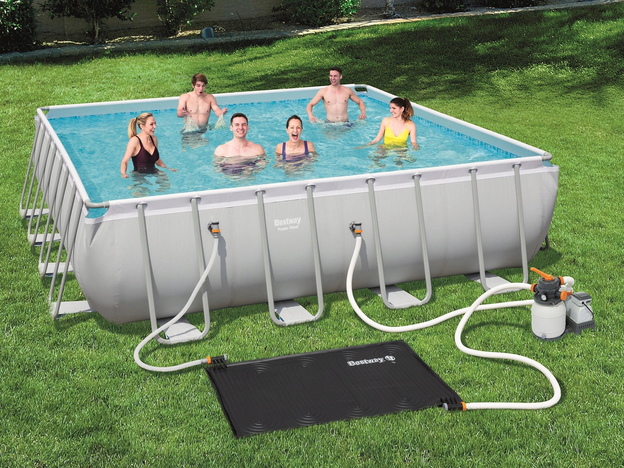 Plastové sluneční absorbéry vhodné především k sezónnímu ohřevu vody v bazénu. Solární ohřev pohlcuje tepelnou energii slunečních paprsků, předává ji vodě, která proudí panelem. Solární ohřev je vyroben z pevného polypropylenu, nereziví, nezarůstá vodním kamenem, ohřeje vodu na příjemnou teplotu. Solární ohřívač lze snadno zapojit pomocí bazénových hadic. Průtokem v solárních panelech se voda zahřeje a vrací se zpět ohřátá do bazénu. Design solárních panelů byl navržen tak, aby mohlo docházet k ohřevu vody pomocí co největší plochy. Ohřev vody tímto způsobem je velmi efektivní a samotný ohřev vody je bez nákladů.