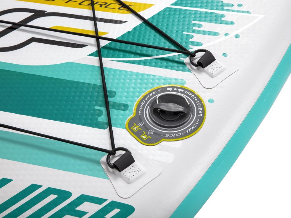 SUP Board Bestway Aqua Glider je vyroben z vysoce kvalitního odolného materiálu Drop Stitch, který poskytuje výjimečnou pevnost, stabilitu a odolnost. Součástí soupravy je malý batoh, do kterého můžete paddleboard sbalit, což výrazně usnadňuje její přepravu.