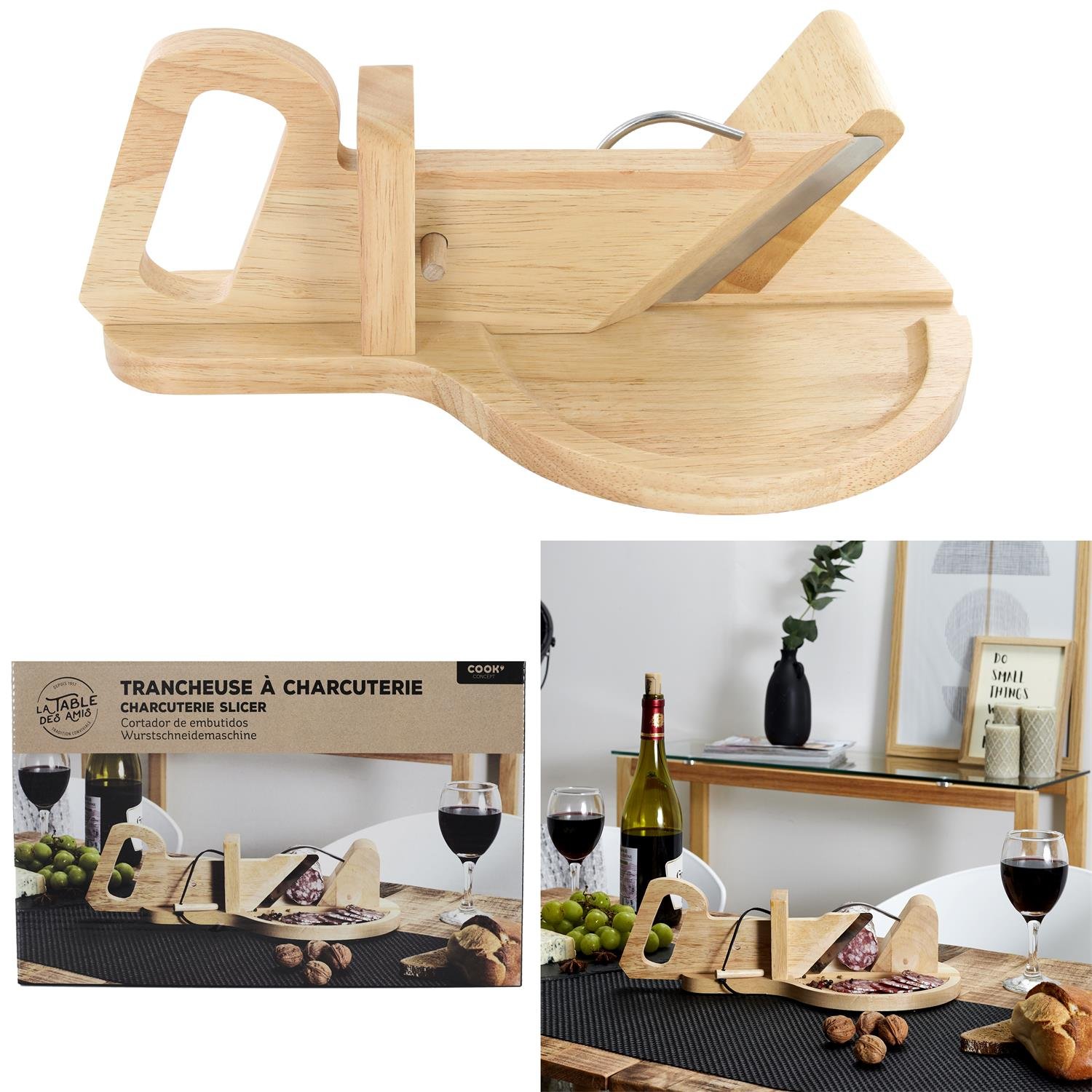 Stylová a praktická dřevěná kráječka na uzeniny je ideálním pomocníkem při servírování salámů, klobás a dalších delikates. Díky ostré čepeli a pohodlné rukojeti zvládnete snadno a přesně nakrájet tenké plátky. Kráječka zároveň dodá vašemu stolu elegantní rustikální nádech – skvěle se hodí na oslavy, degustace i každodenní použití.