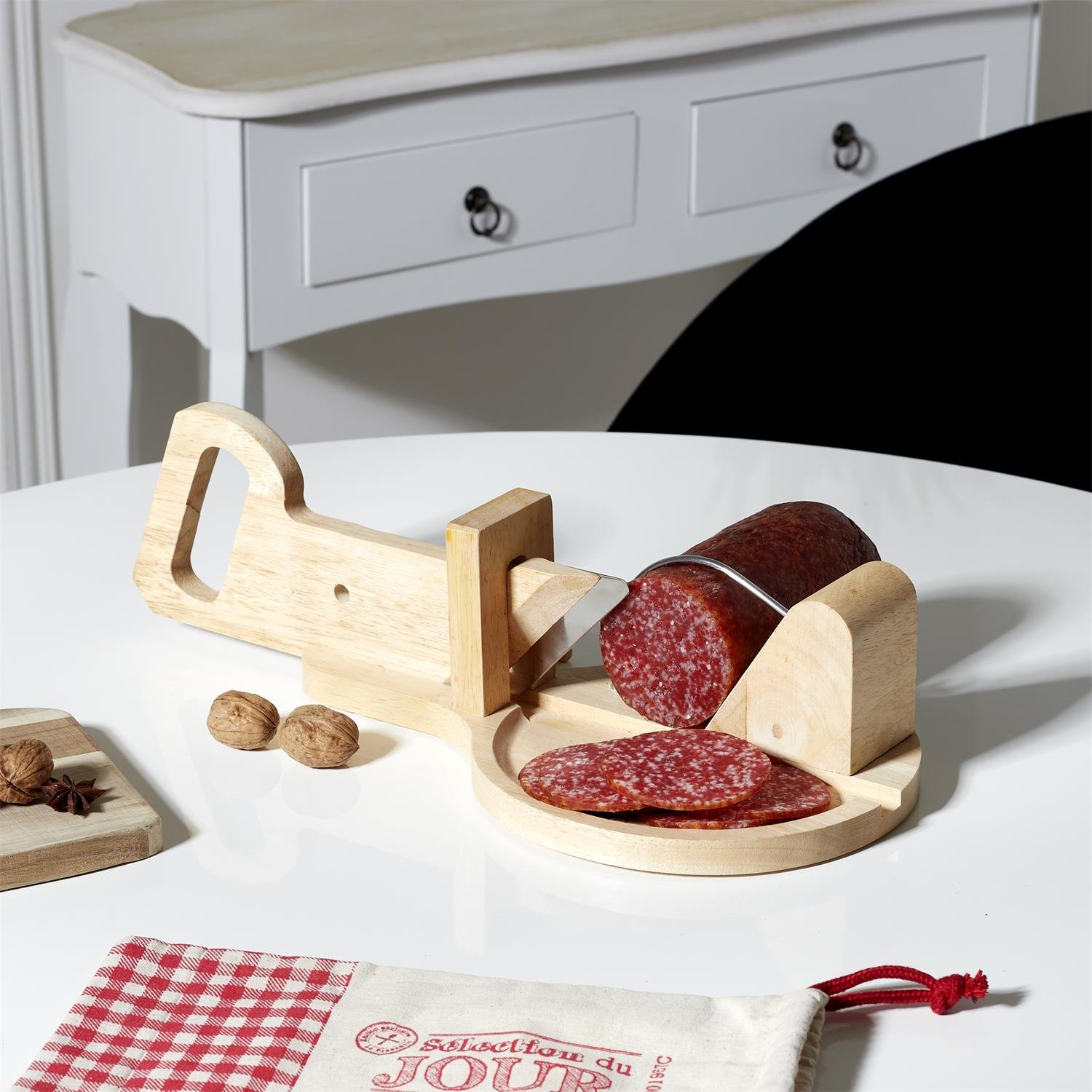 Stylová a praktická dřevěná kráječka na uzeniny je ideálním pomocníkem při servírování salámů, klobás a dalších delikates.