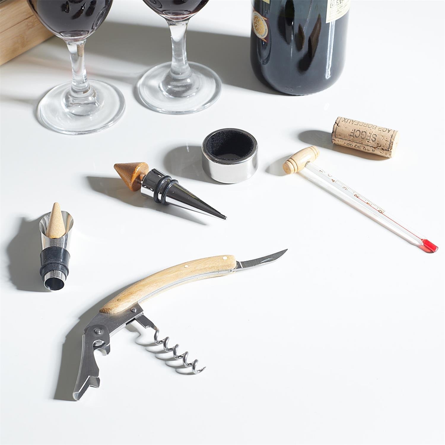 Elegantní dárkový set na víno je ideálním dárkem pro každého milovníka vín. Sada obsahuje 5 praktických doplňků v dřevěném boxu s nápisem „Millésime Meilleur Papa“, což z ní dělá skvělý tip na dárek pro tatínky. Všechny nástroje jsou vyrobeny z kvalitních materiálů a díky elegantnímu designu doplní každou vinotéku.