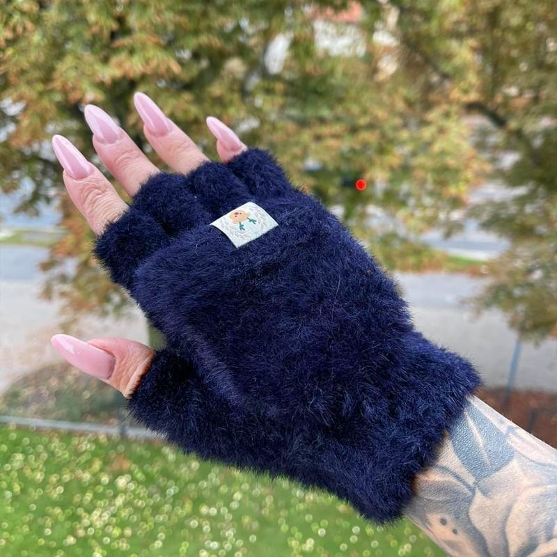 Dámské chlupaté rukavice bez prstů v tmavě modré barvě, vyrobeny z vysoce kvalitního materiálu a navrženy podle nejnovějších módních trendů, které vás příjemně zahřejí.
