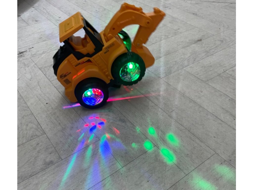 Stavební bagr na baterie. Bagr po zapnutí hraje písničky, svítí a jezdí. Každý kluk potřebuje pomocníka při práci. Díky funkcím bude hraní o něco zábavnější!