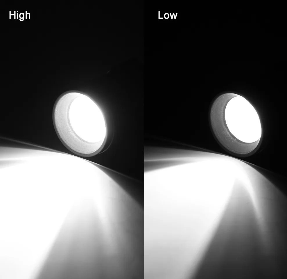 Tři režimy svícení: vysoké světlo, střední světlo a stroboskopické světlo.