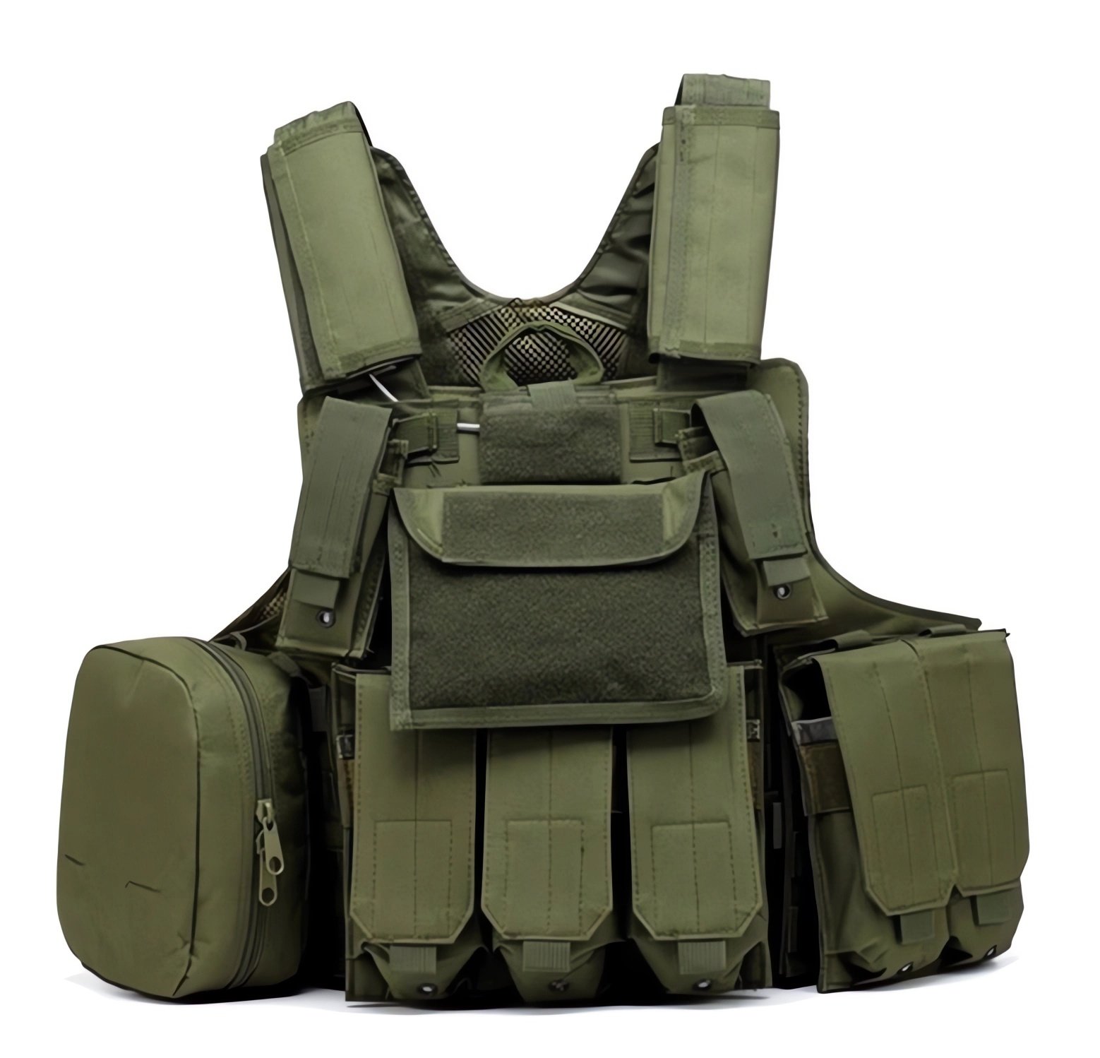 Ochrana, bezpečí a schopnost efektivního přenosu výbavy, přesně to nabízí tato taktická vesta. Nylonová taktická vesta umožňuje přepravovat více položek vybavení současně. Nechybí váčky na dlouhé a krátké zásobníky zbraní, kapsa na vysílačku a lékařská brašna.