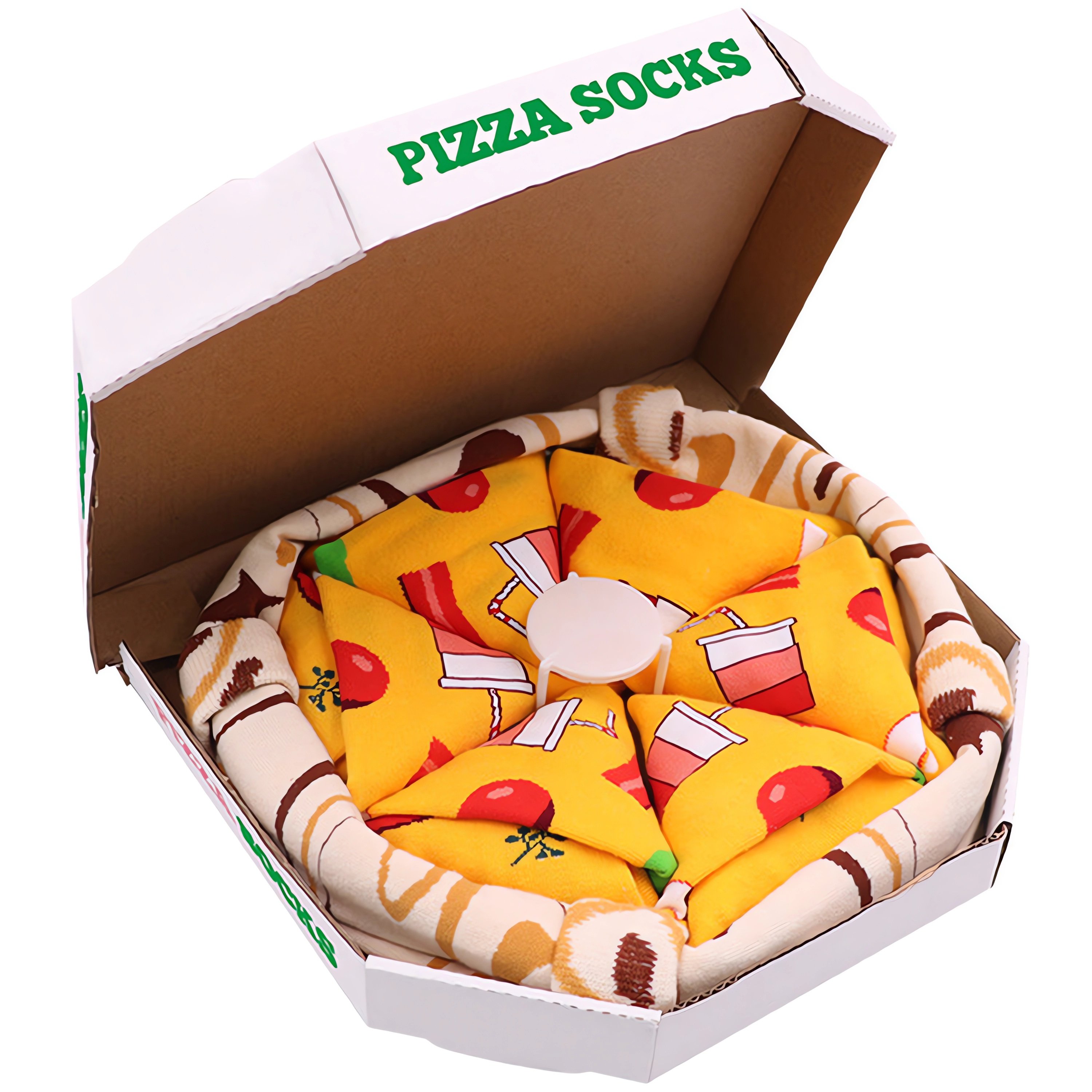 Pizza ponožková sada spolehlivě kopíruje opravdovou pizzu v krabici.