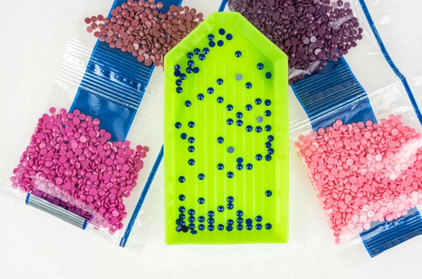 Aplikace kamínků probíhá pomocí přiloženého pera a vosku. Doporučujeme odkrýt vždy ten kousek plátna, na kterém pracujete, aby se neztrácela viskozita lepidla. Kamínky jsou rozděleny do několika sáčků a opatřeny kódem. Plátno obsahuje legendu, kde podle přidělených kódů poznáte, kam kamínky lepit.