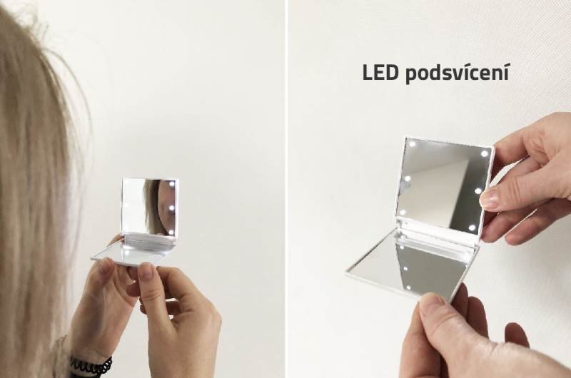 Výhodou zrcátka je, že má v sobě zabudované podsvícení, takže ho využijete večer, pokud se chystáte někam na skleničku či večeři, rande atd. Díky podsvícení vám tak neunikne žádný detail. Pro zapnutí podsvícení stačí přepnout tlačítko z pozice OFF na pozici ON na zadní straně zrcátka.