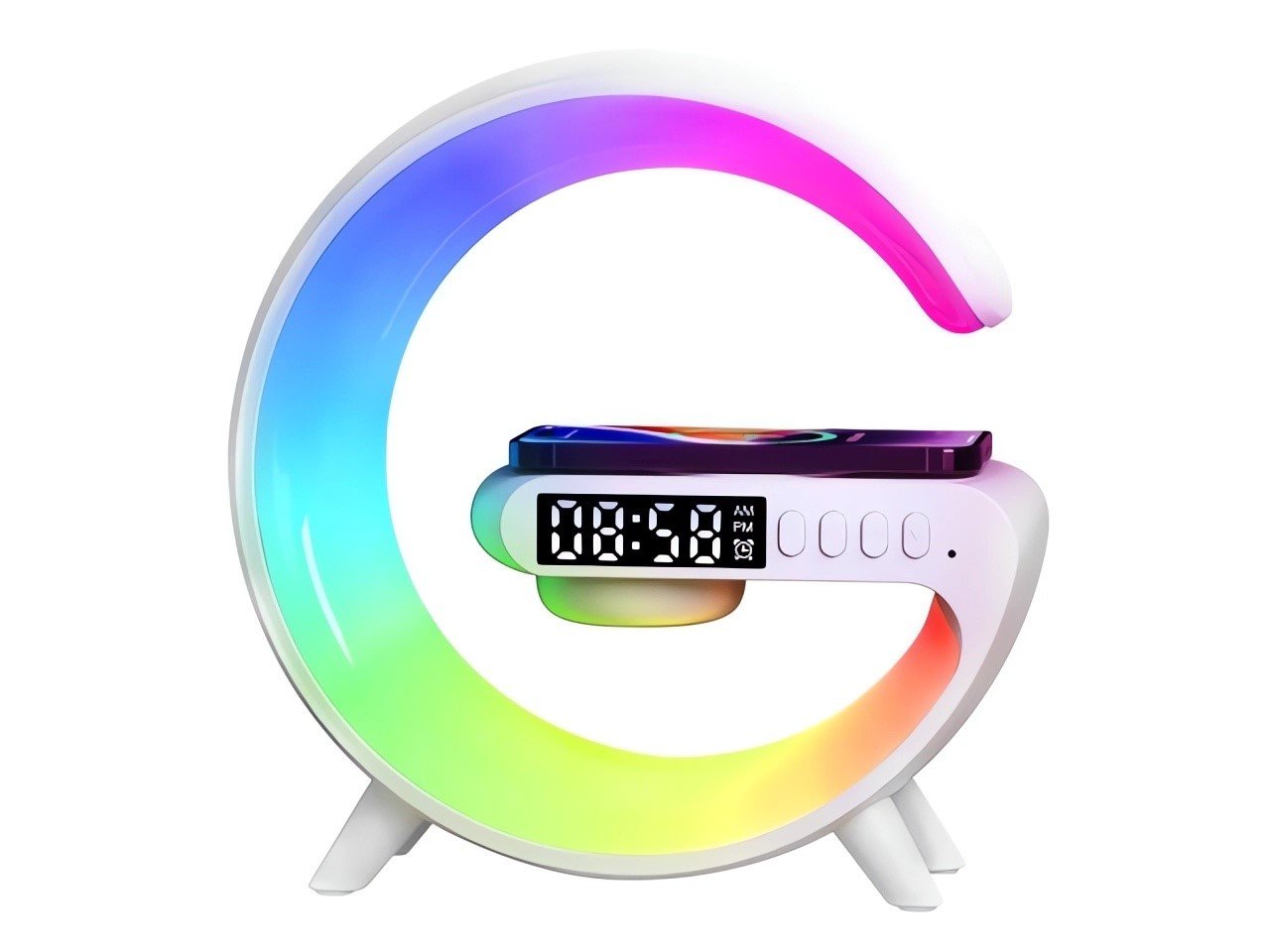 Inteligentní multifunkční svítilna s indukční nabíječkou QI 15W a Bluetooth LED RGB reproduktorem.