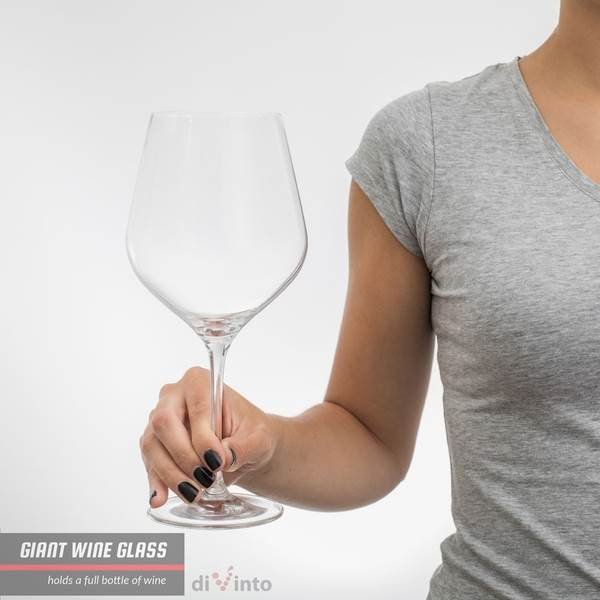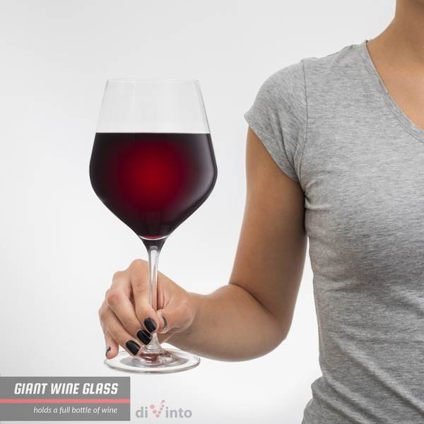 Obří sklenice na víno, která plně uspokojí potřeby každého milovníka vína. Potěší se z ní osoba, která miluje neustálé party, kamarádka, která si chce promluvit při skleničce vína, nebo ten, kdo má důvod k oslavě – např. po složení zkoušky nebo při povýšení v práci.