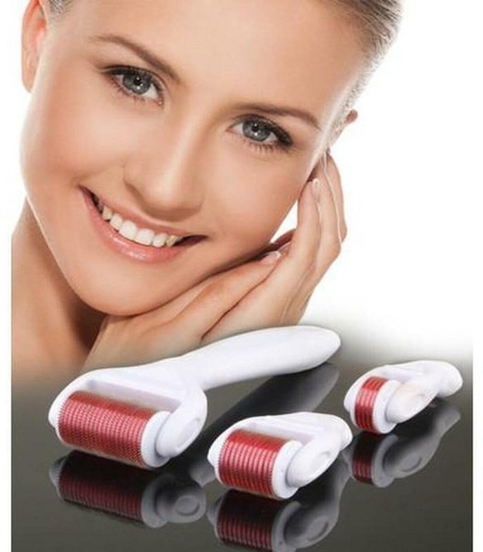 Sada obsahuje rukojeť se třemi výměnnými hlavicemi různých velikostí. Na každé hlavě jsou ocelové jehly, které provedou téměř 250 000 mikrovpichů za 5 minut.