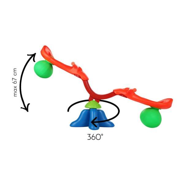 Houpačka je vyrobená z kvalitního plastového materiálu, který odolává povětrnostním vlivům. Nebojte se jí umístit nejen do dětského pokojíčku, ale také na zahradu. Pod sedátky jsou na obou stranách nafukovací míčky, které tlumí nárazy při dopadu.