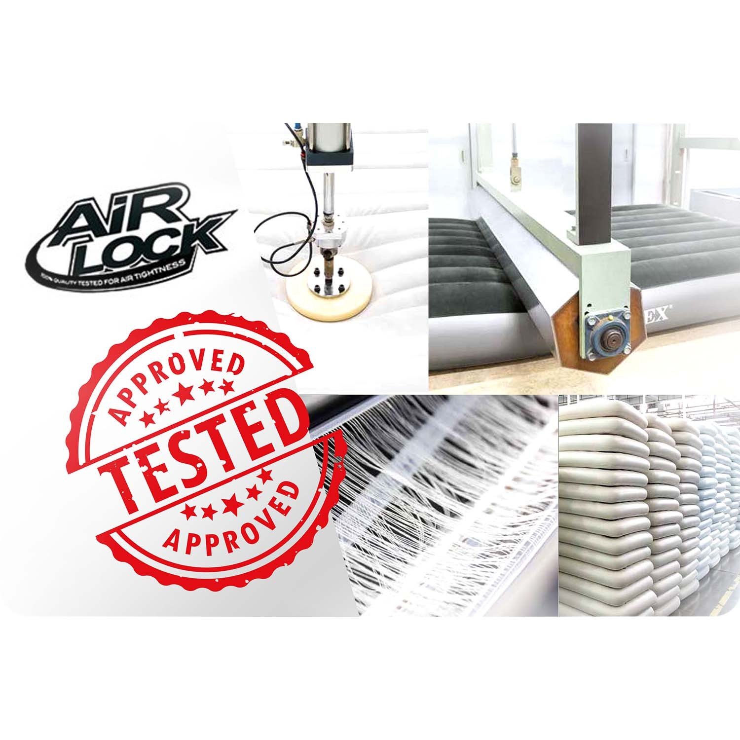 Každý kus nese certifikát AirLock – to znamená, že před opuštěním továrny je produkt pečlivě testován z hlediska těsnosti. Výrobce tak garantuje konzistentní kvalitu a spolehlivost. V balení najdete kromě samotné matrace také záplatu, která se hodí pro drobné opravy.