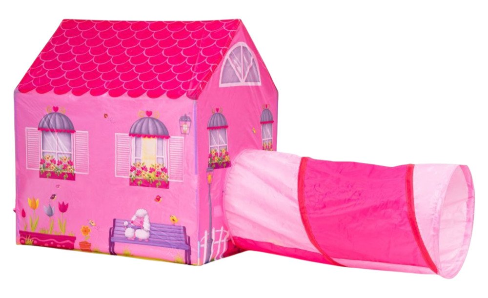 iPlay 8326 Dětský hrací stan - domeček s prolézacím tunelem, růžový