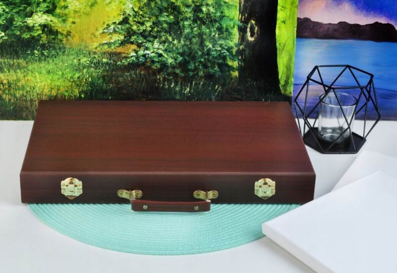 Kompletní velká sada v dřevěném kufříku obsahuje 81ks potřeb pro malé malíře. Jedná se hezký dárek na malování pro dítě k narozeninám, k svátku nebo k Vánocům, ať už pro holčiku nebo chlapečka, jenž si rád kreslí a maluje.