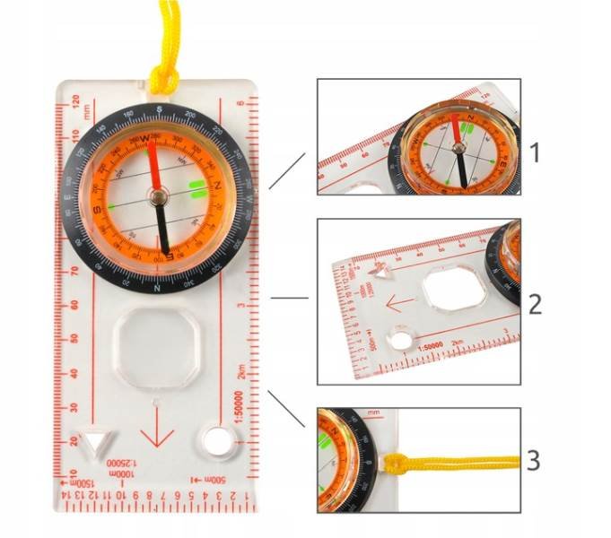 S touto busolou nikdy neztratíte tu správnou cestu. Má lupu, dělené stupnice a pravítko. Je zavěšen na provázku, aby jste jej mohli mít na krku a tím pádem stále před očima.