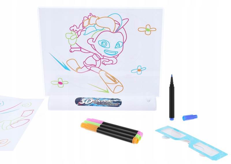 Obrázek uvidí 3D. Samozřejmě si můžou i vytvořit svůj vlastní obrázek a ten poté vložit do stojanu. Ve fantazii se meze nekladou. Fixky pak stačí jen otřít vlhkým hadříkem (vše součást balení). Pokud hledáte kreativní, neotřelou a magickou zábavu pro vaše děti, určitě s touto tabulkou nešlápnete vedle.