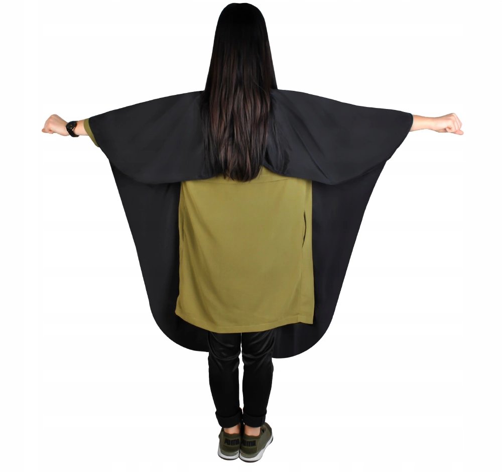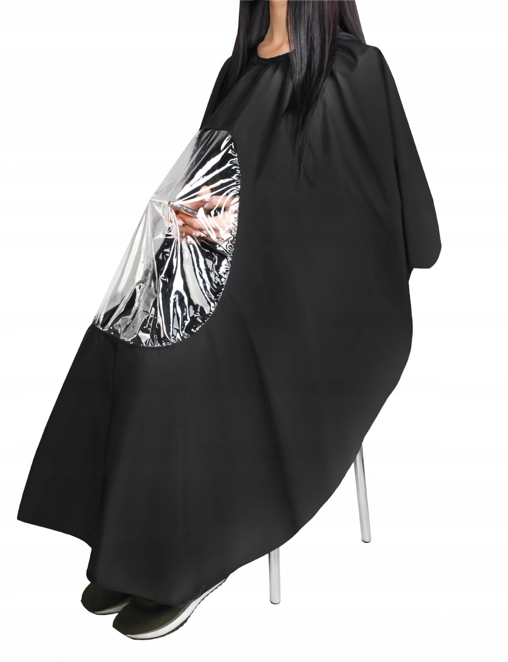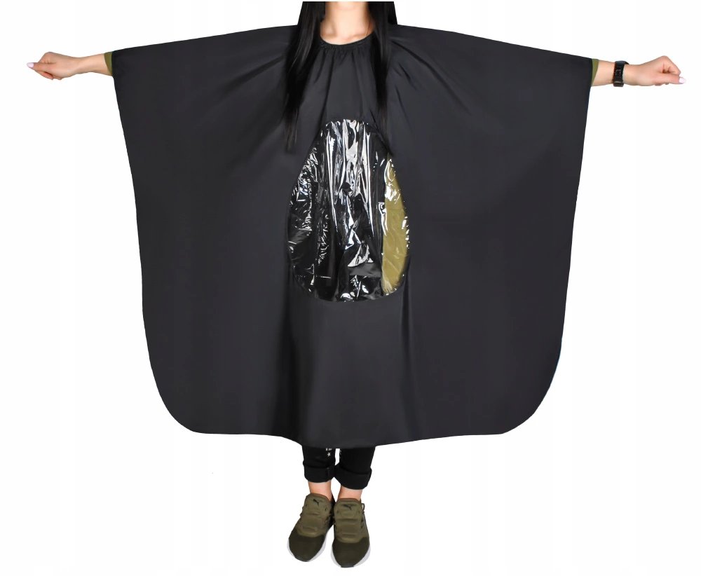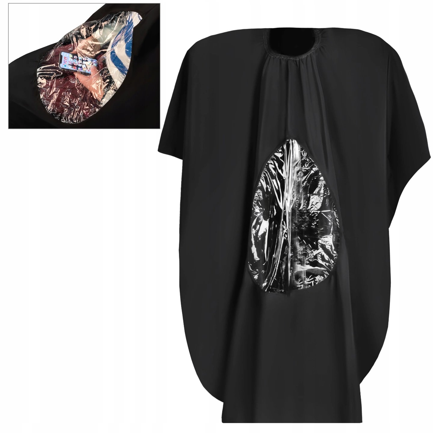 Kadeřnická pláštěnka je vhodná pro domácí i profesionální užití. Má velký otvor na mobil či tablet.