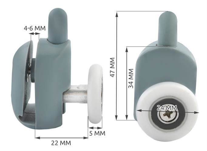 Tělo produktu je vyrobeno z mosazi v kombinaci s tvrdým plastem typu ABS. Pohyb je naprosto plynulý. Rozměr 24 x 6 mm. Kolečka mají nastavitelný prvek, díky čemuž pasují do naprosté většiny sprchových dveří