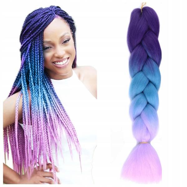 Syntetické ombre vlasy. Ideální pro večírky, vlasy jsou matné a rovné s copem, který lze rozmotat.