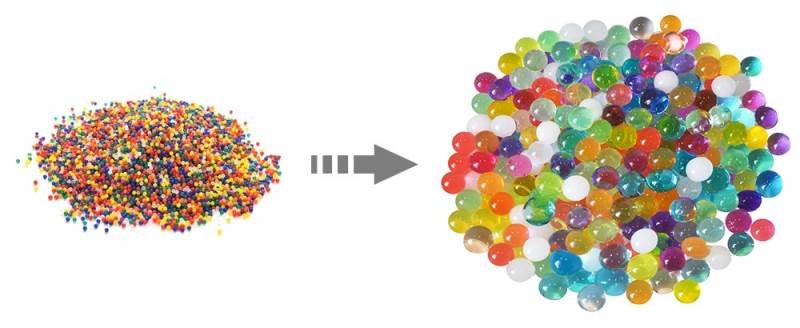 Použití: Namočte perly na 8 hodin do vody, kde nabobtnají do průměru cca 1 cm. 1 g krystalků je cca na 100 ml (1 deci) vody.