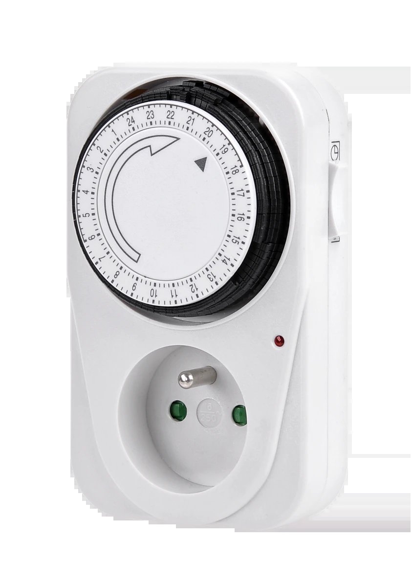 Zařízení pracuje v pevném 24hodinovém režimu, takže nastavený cyklus se opakuje každý den ve stejných časech. Analogové provedení přináší přehlednost a jasně definovaný způsob používání bez složitých funkcí. Součástí je také ochrana před dětmi, která omezuje nechtěnou manipulaci a zvyšuje bezpečnost při používání v domácnostech.