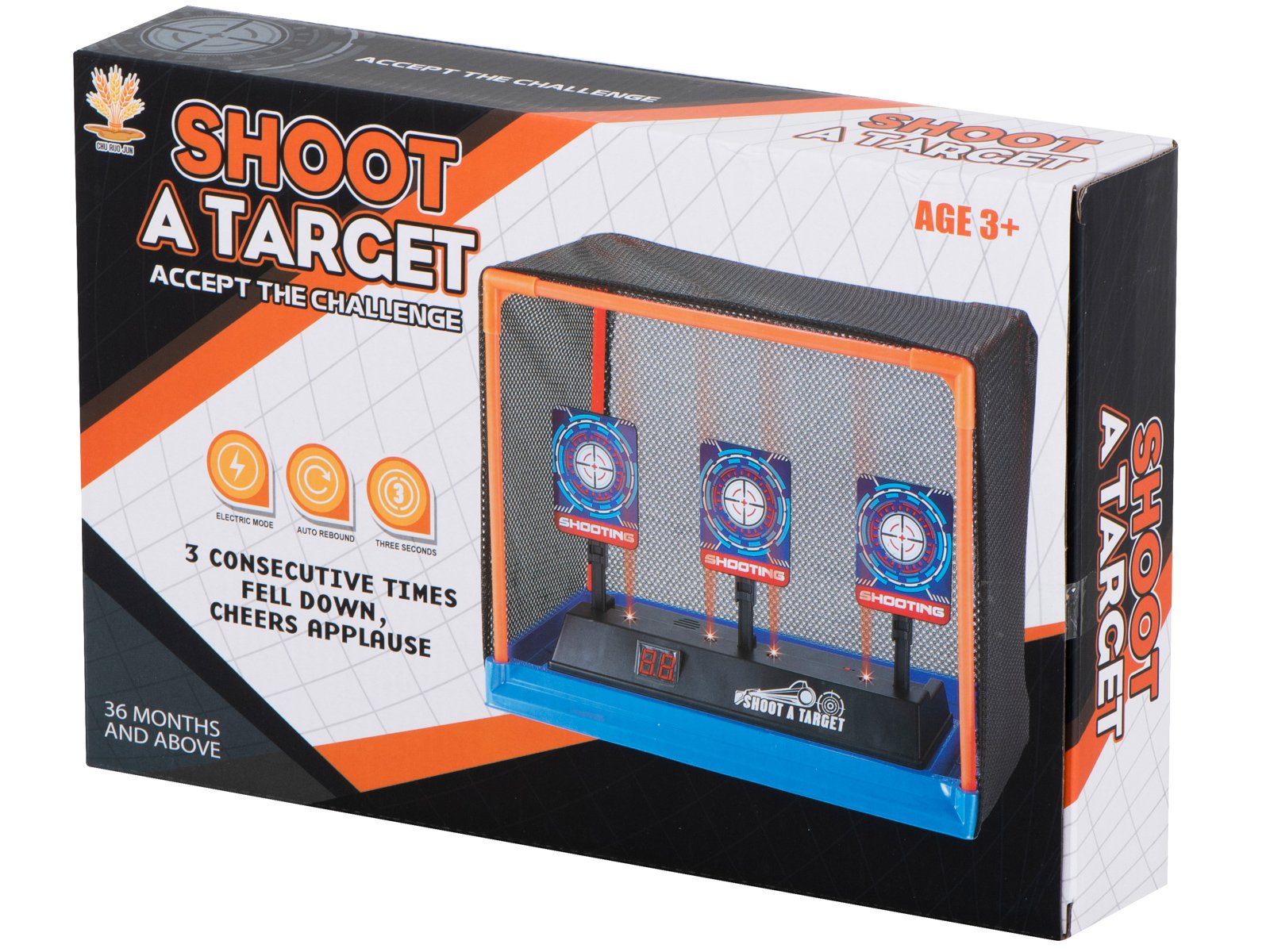 Na terč můžete střílet pěnovými šipkami nebo BB zbraněmi. Má světelné a zvukové efekty, díky nimž je hra zábavnější. Po zásahu uslyšíme zvuk rozbití skla nebo potlesk. Ciferník má navíc dvoumístný čítač skóre. Každý terč je při zasažení umístěn zpět. Po sestřelení tří cílů získáme 1 bod, poté všechny automaticky stoupají.