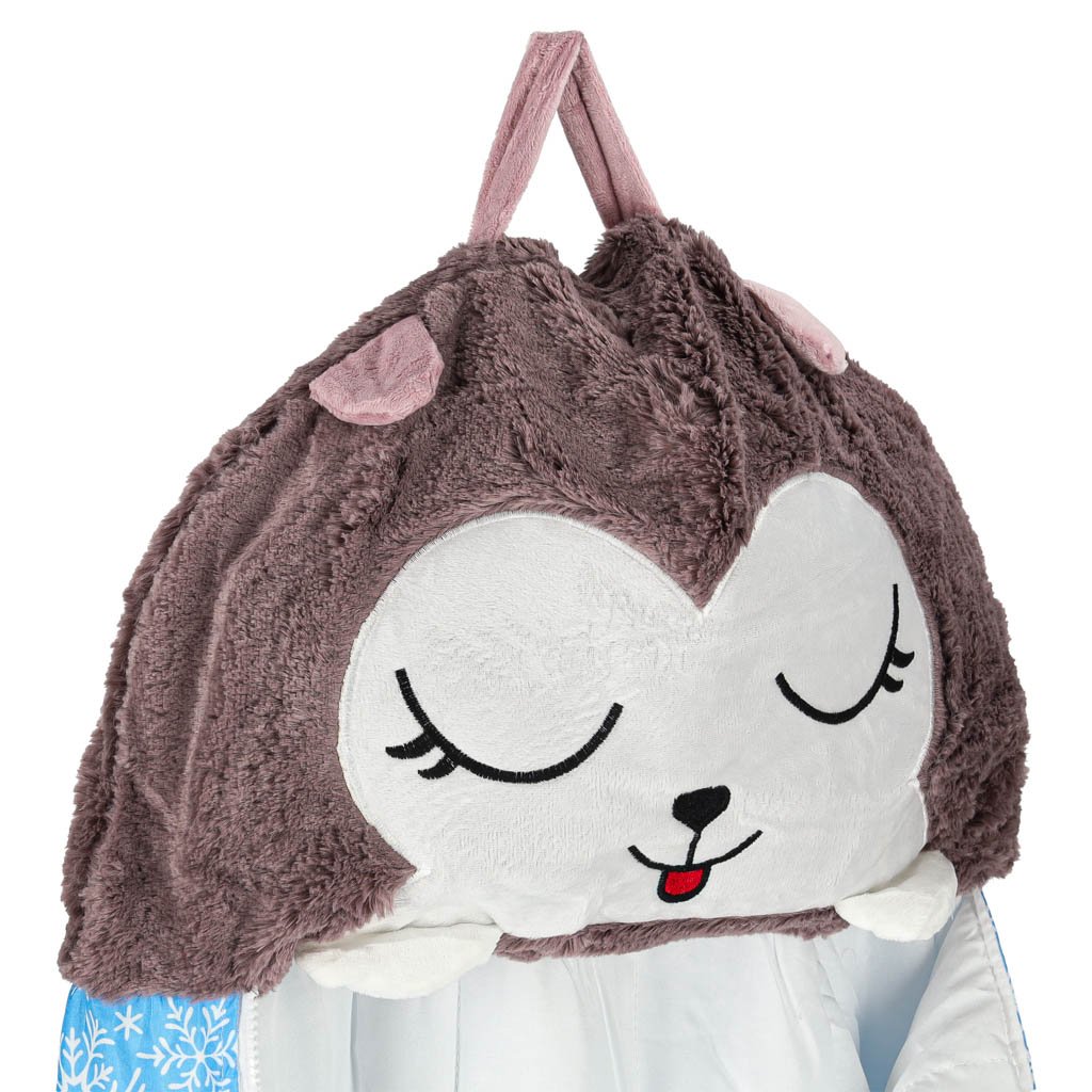 Po složení se spací pytel promění v přátelského plyšového maskota, takže jeho balení a přeprava je dětskou hračkou. Samotné batole si ho rádo vezme na jakýkoli výlet. Spací pytel navíc slouží i jako deka, ideální pro zdřímnutí nebo večerní útulné chvíle.