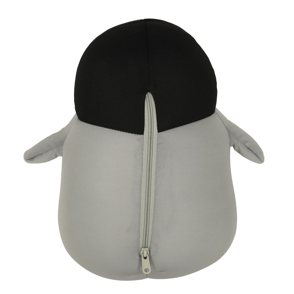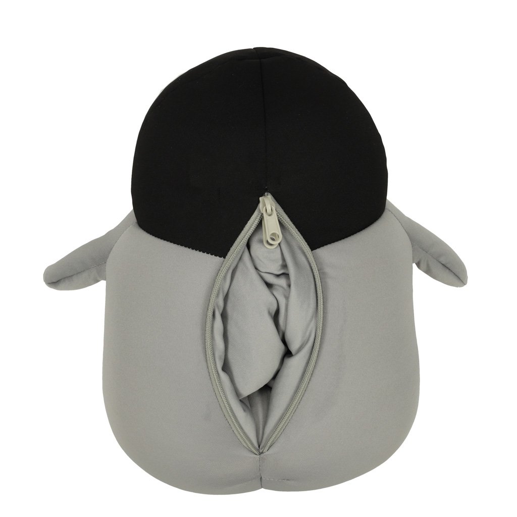 Během několika sekund se z ergonomického polštáře promění v rozkošnou plyšovou hračku ve tvaru tučňáka, připravenou k mazlení. Uvnitř polštářku je pružný granulát - polystyrenové kuličky, které lze nasypat do příslušné komory a změnit tak tvar výrobku.