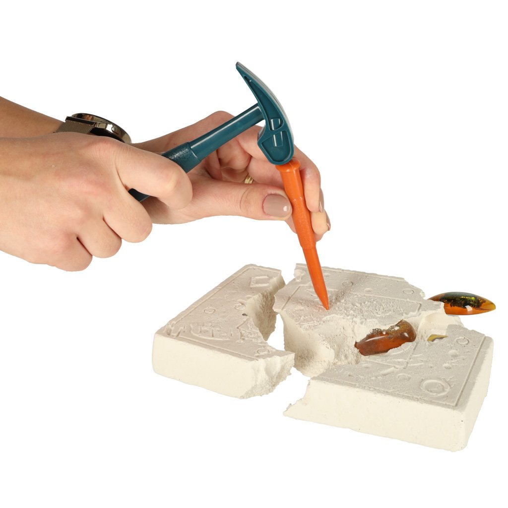 Úkolem dítěte je jantary vyjmout pomocí přiloženého kladívka a dláta. Je to nejen zábava, ale také rozvíjí motorickou koordinaci a schopnost soustředění.