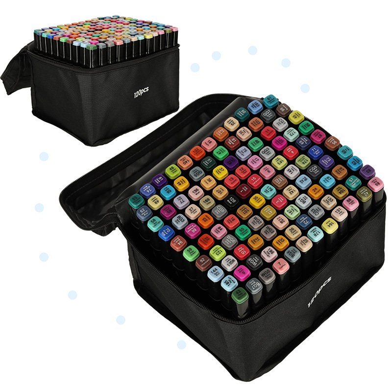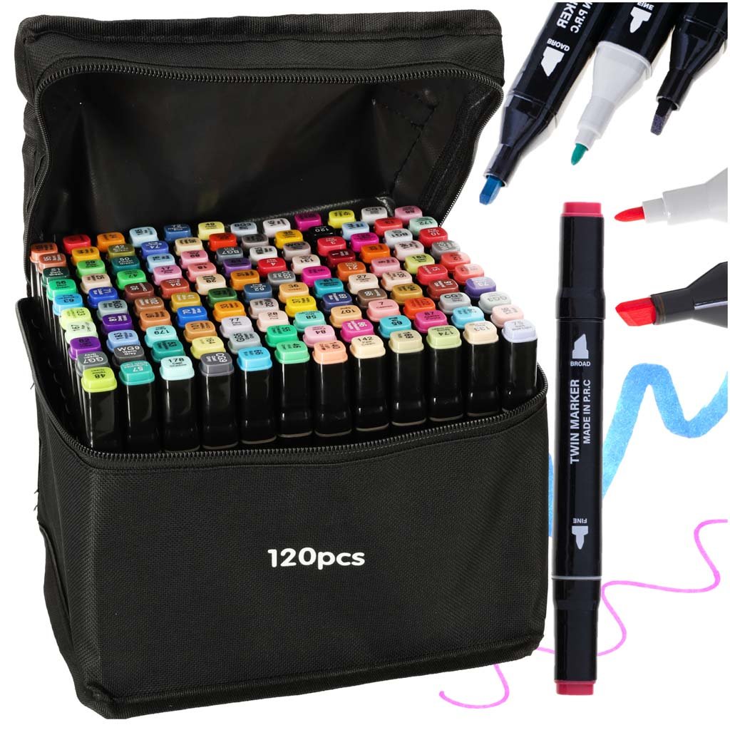 120 alkoholových popisovačů je perfektní volbou, ať už jste architekt, grafický designér, zkušený ilustrátor nebo kreslíř, který s kresbou teprve začíná. Tyto popisovače jsou skvělou volbou pro každého – můžete kreslit, psát, ilustrovat, skicovat, stínovat, navrhovat, vybarvovat a mnoho dalšího.