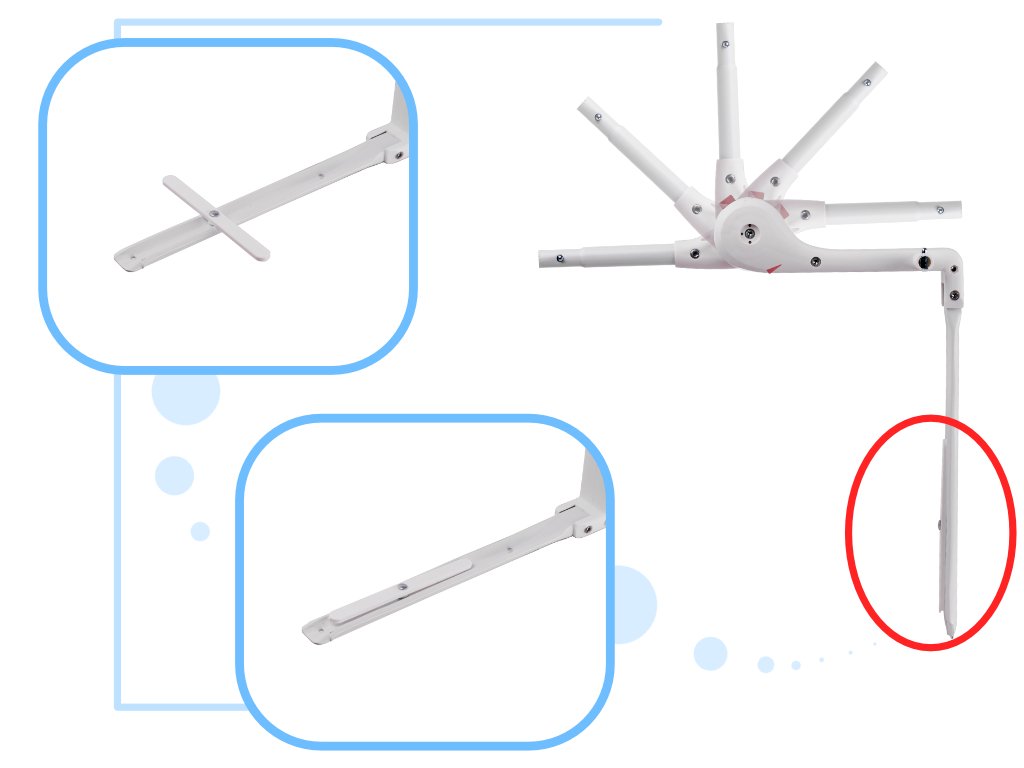 Montáž zábradlí je neuvěřitelně snadná! Začněte tím, že jej složíte a vložíte příslušné prvky rámu do otvorů síťoviny. Pak stačí zvednout matraci postele a vyčnívající stojany dát pod zábradlí!